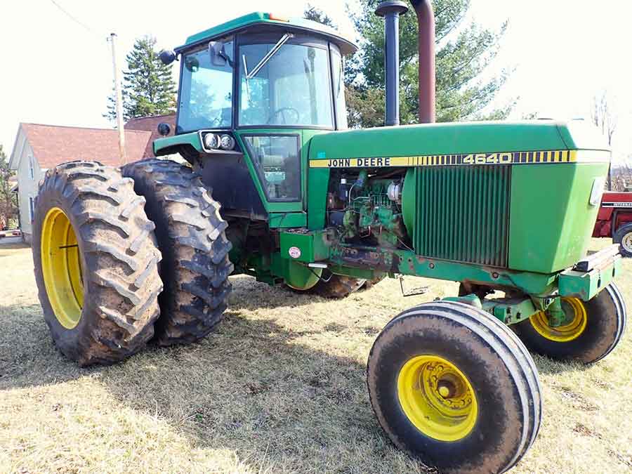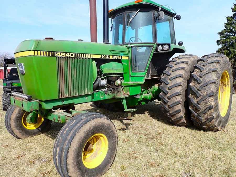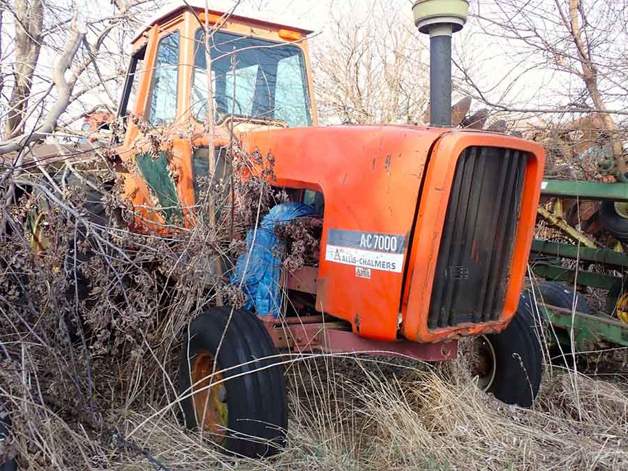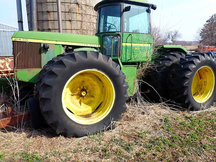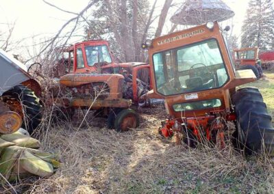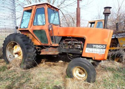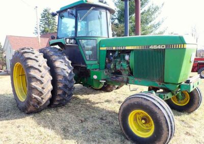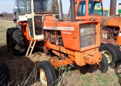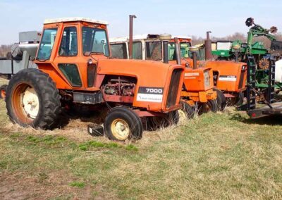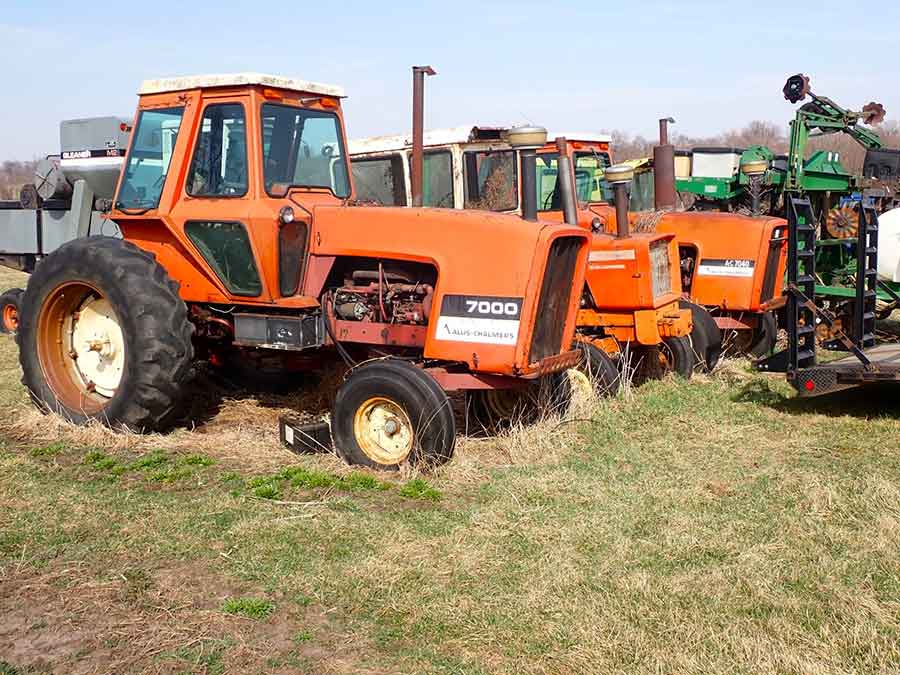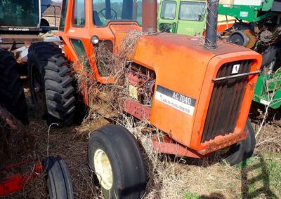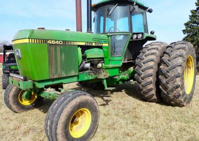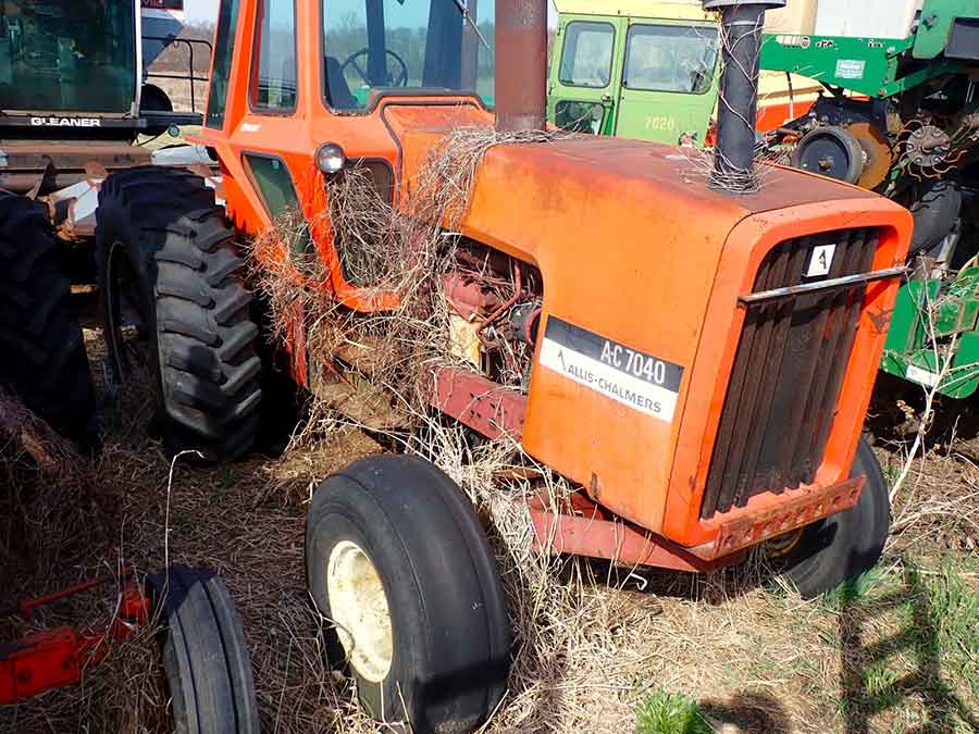 TRACTORS: JD 4640, tach shows 7830 hrs., power quad shift, sells w/duals – 20.8.38, dual hyd., 1000 PTO, 3pt, runs-starts hard; IH 484, diesel, tach shows 1279 hrs.-not verified, 3pt., single hyd., pto-shaft broke, good rubber, runs; Minneapolis Cross Motor; JD 8430, tach shows 9704 hrs., quad range, 20.8.38 rubber, has not run in a while, good engine, bad trans.; JD 7020, center pivot; AC 7080; AC 200; 3-AC 7000; AC 180; AC 7040; AC 190; AC B; AC WD; AC WD45; IH 400 w/V8; Minneapolis G1000; Minneapolis 670; Minneapolis U; Farmall H;; IH C40; JD 60; IH 826; JD 70, power steering, NF, hrs. unknown; Farmall cub; Agri Power 7000;