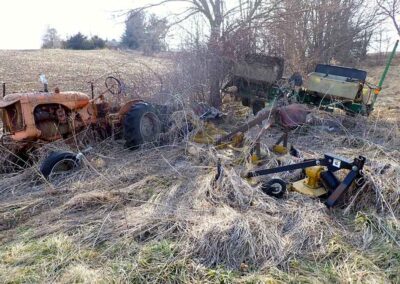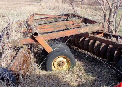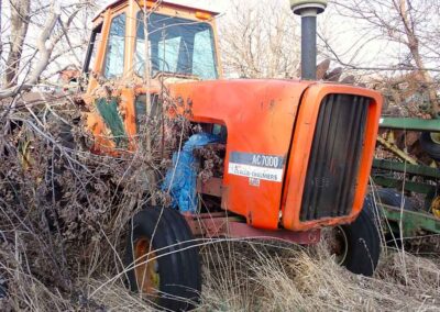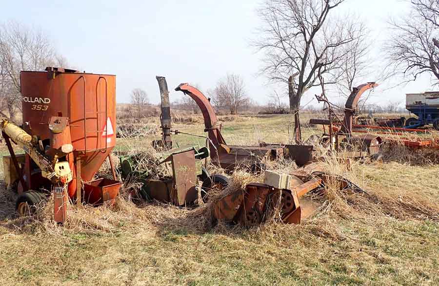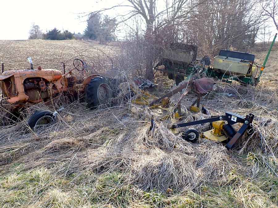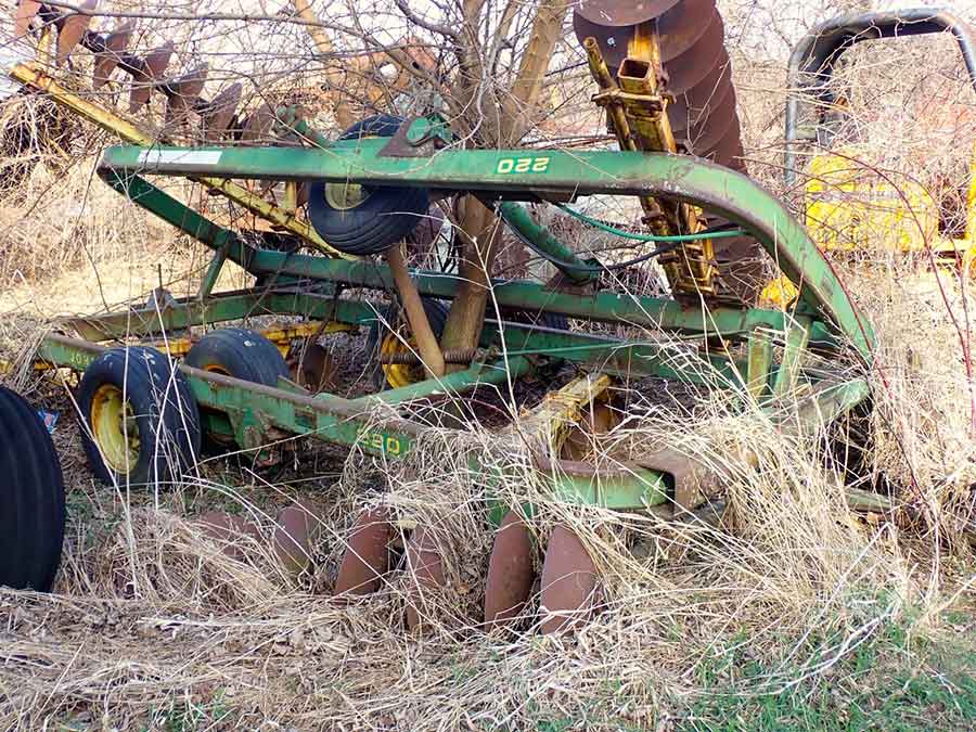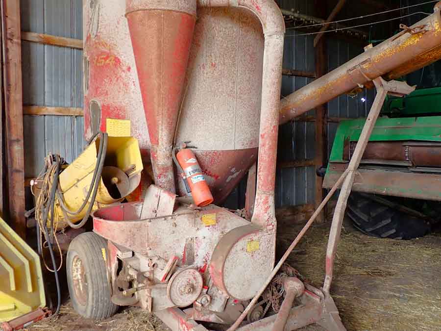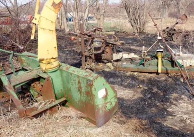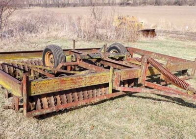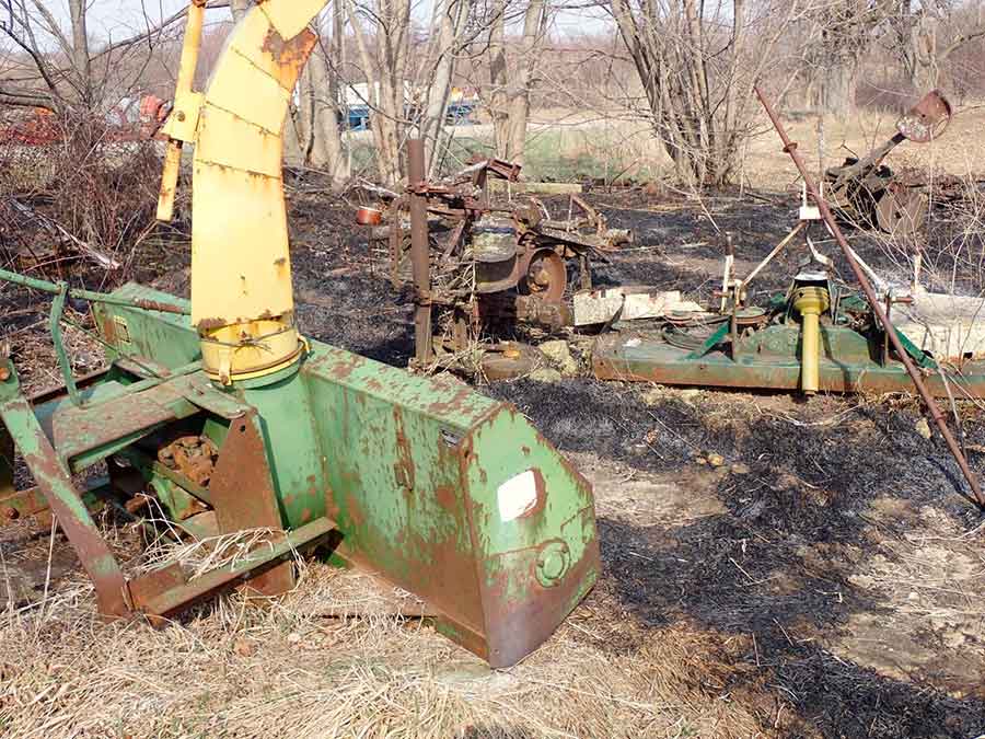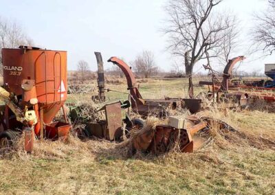 TILLAGE & FORAGE: Minneapolis grain drill w/grass seed; 3pt tiller; AC Rotobaler; IH stalk chopper; AC 5-bottom plow; Glenco 4-row cultivator; 2-15’ cultimulchers w/inboard wheels; MelRoe 244 11’ drill; 3-bottom slat bottom plow; AC chopper; JD 7000 planter; NH 855 baler; JD 220 disc, broken; 4’ tiller; cultivator parts; Bear Cat flail chopper;