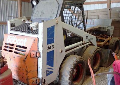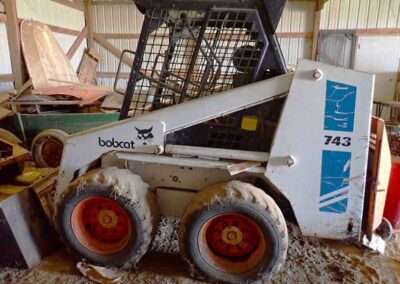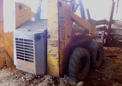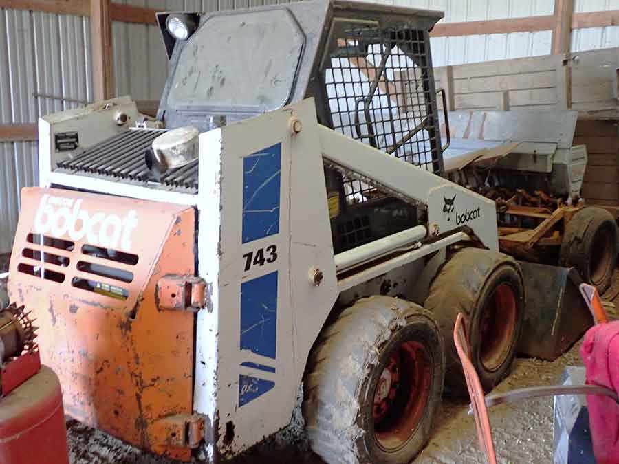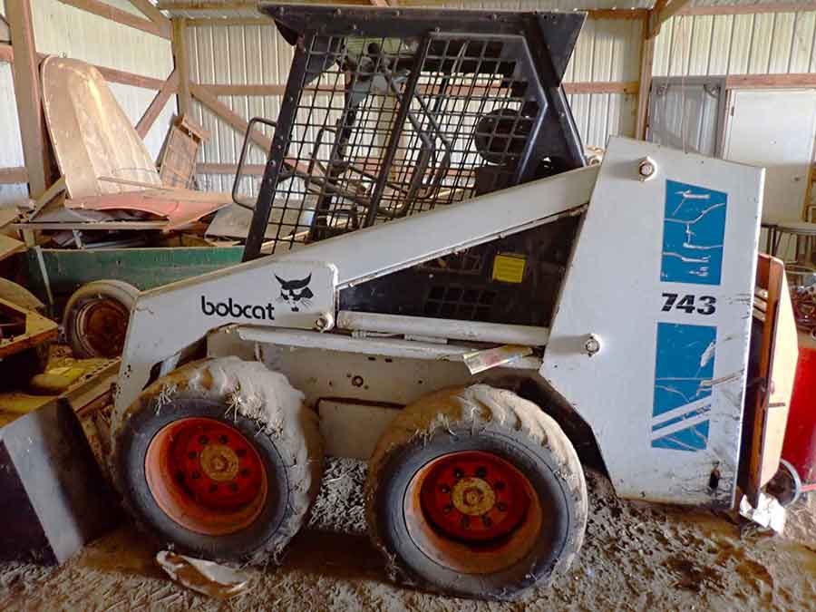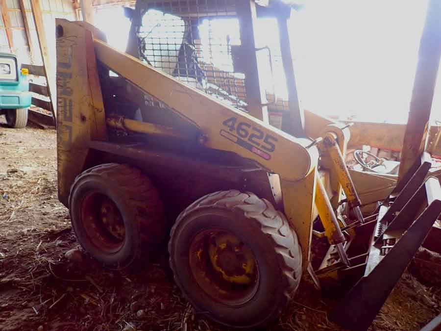 SKIDLOADER (not running): Gehl 4625, tach shows 2327 hrs., t-bar controls; Bobcat 743;
