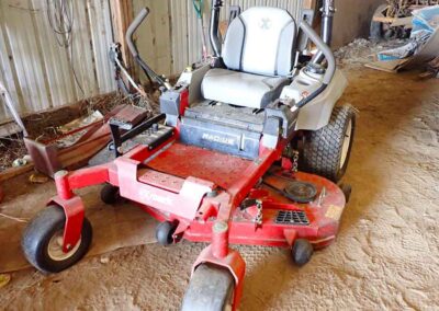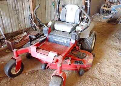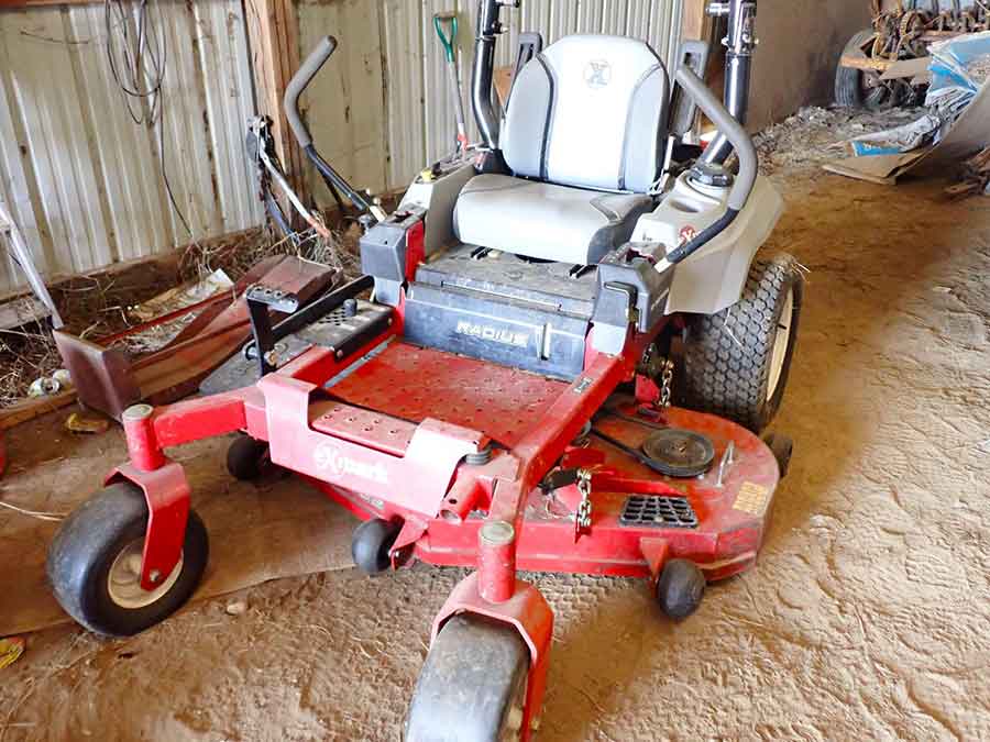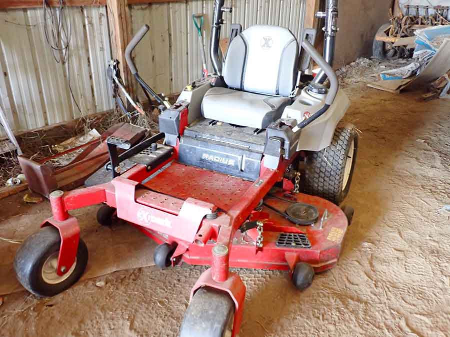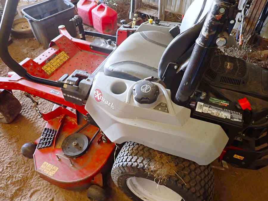 SNOW BLOWER, ZERO TURN, LAWN & GARDEN: JD snow blower; Exmark Radius Zero Turn, E-Series, 52” deck, ultra cut series 3, commercial v-twin 708cc motor, new battery, recently serviced, nice; push mower; AW Finnish mower;