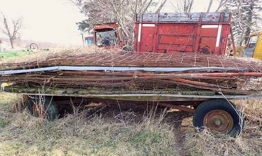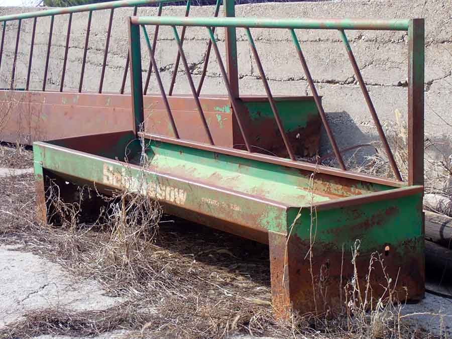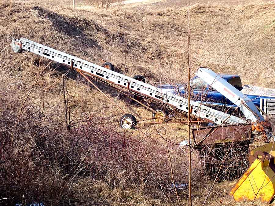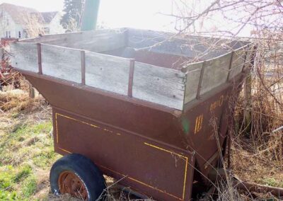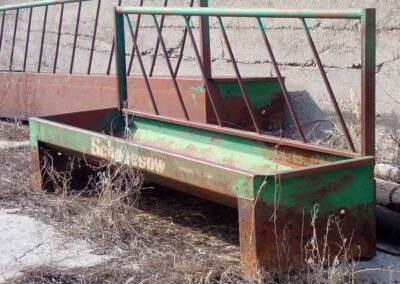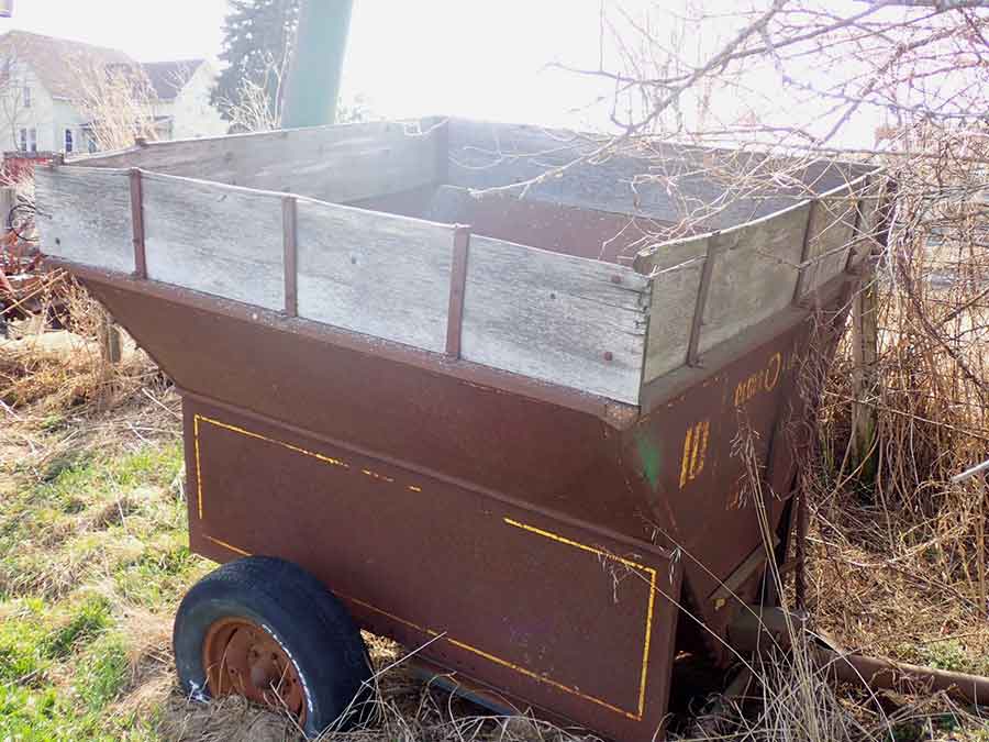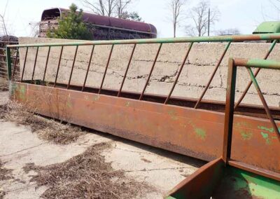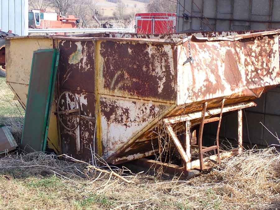 WAGONS: Grainovator wagon w/auger; fertilizer auger wagon; running gear; gravity box-sells with scrap in it; Rex chopper box; red running gear; 3-Schoessow fenceline grain feeders, 2-10’ & 1-20’; gravity box top; 8 or 10-ton running gear; gravity wagon on JD gear;