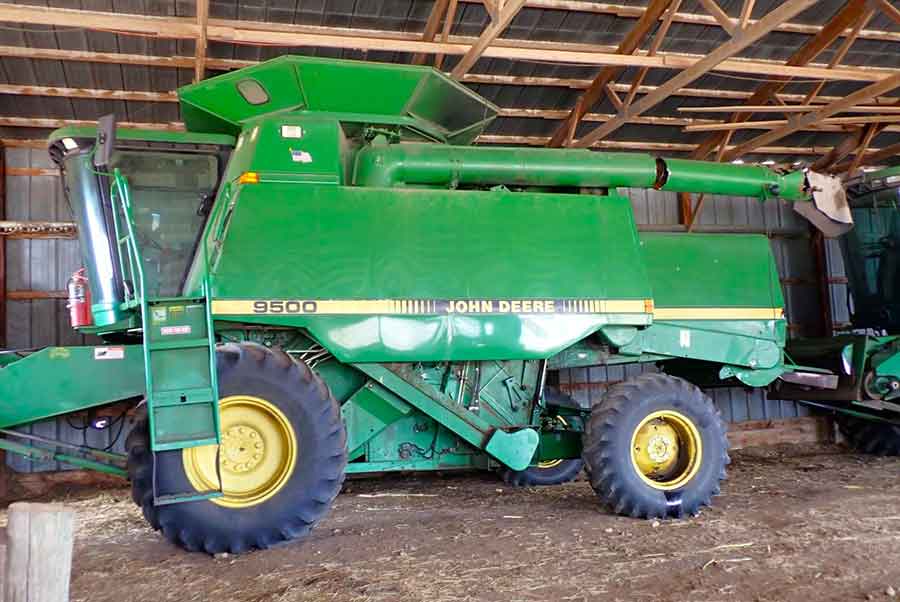COMBINES: JD 9500 Combine, hrs. unknown; NH TR85 Twin Rotor combine; AC Gleaner M2,; IH 915;