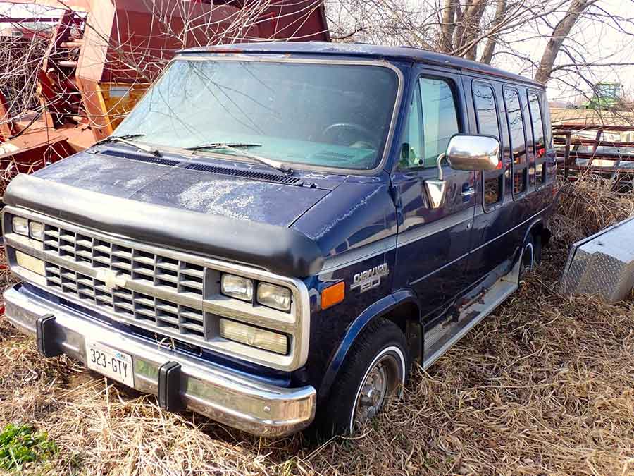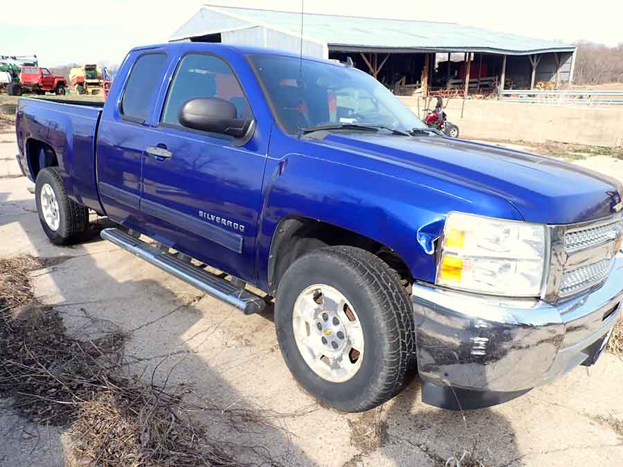TRUCKS, VANS, & CARS: Ford grain truck w/dump box; ’69 Dodge truck; 2013 Chevy Silverado, 108,344 miles, ext. cab, 6’ box, flex fuel, 2WD, has new battery, runs, nice; late 90’s Chevy pick-up, ext. cab; 2-IH grain trucks; Chrysler Lebaron convertible, V8; 1993 Chevy van; Dodge Ram 1500 van; 2002 GMC Sonoma LS;