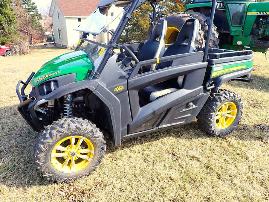 GATOR: JD Gator RSX860, Multilink IRS, 4×4, power steering, 1,804 miles, dump box, rec. hitch, windshield, very nice, runs good;