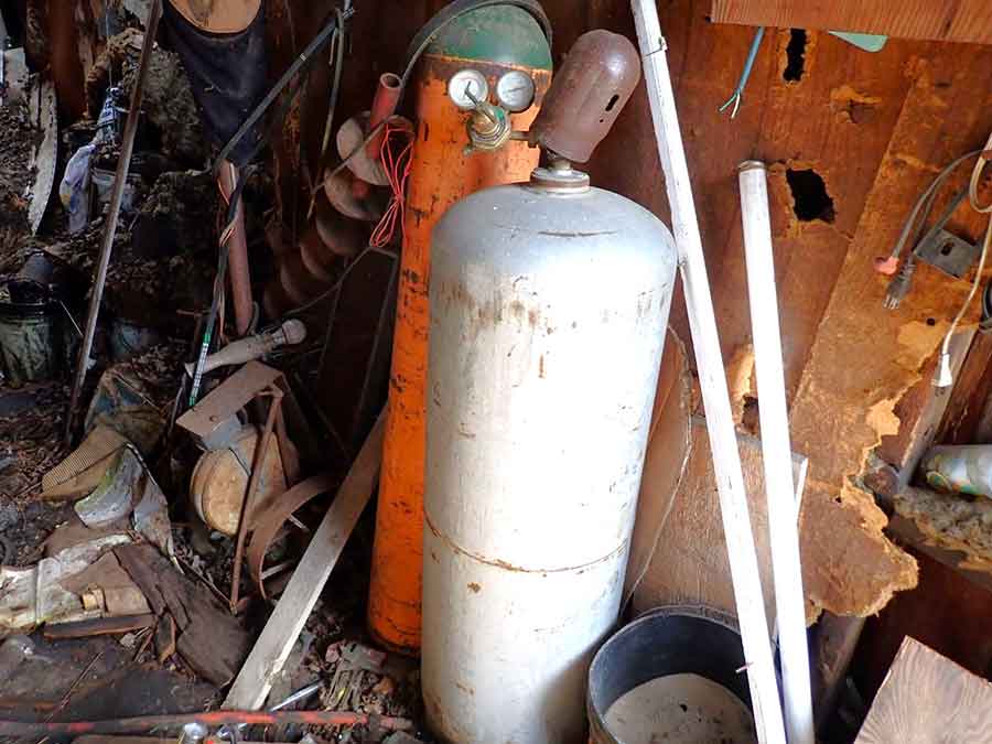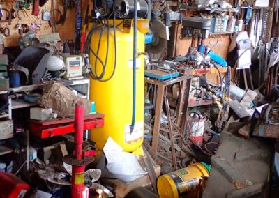 SCRAP PILE & CONTENTS OF SHED: Ass’t of scrap iron & tin; 2-piles of iron/machinery; 2-contents of sheds;