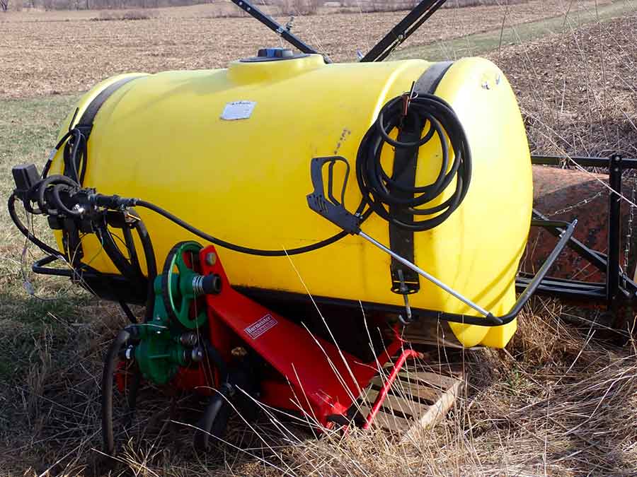 FARM MACHINERY & EQUIP.: NH 354 Mixer Mill, mechanical; Shaver 3pt. post pounder; NH 80 Bale mover; Bear Cat woodchipper w/pto drive; NH 352 Mixer Mill; Heston 10 stacke; 2-New Idea corn pickers, pull-type; 3pt sprayer; Kewanee elevator w/fold down snoot, on transit; NH 80 bale mover; 6’ mat. bucket, nice shape; Howse 6’ 3pt mower; 300 gal. 3pt sprayer w/ 27’ booms, nice; sickle mower;