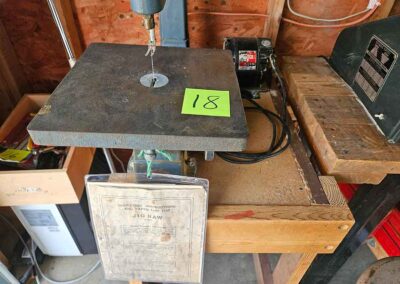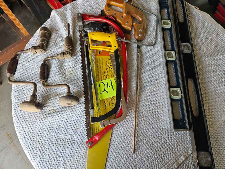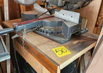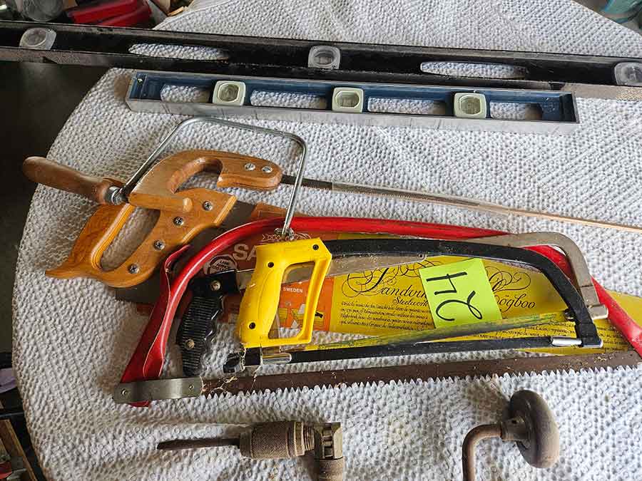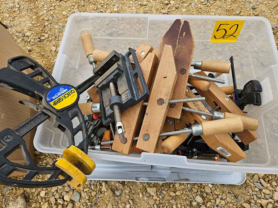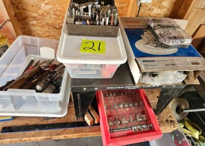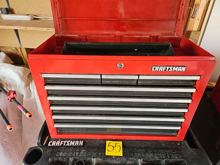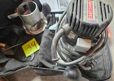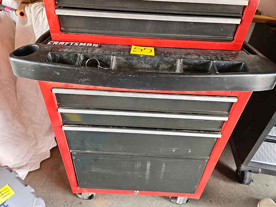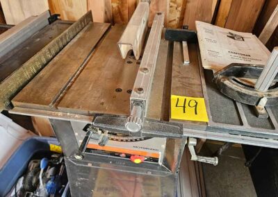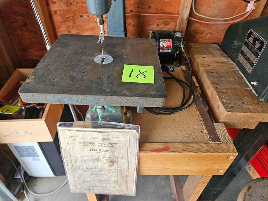 TOOL & SHOP ITEMS: Craftsman stackable tool chest on wheels, 8-drawers on top, 3-drawers & cabinet on bottom, nice; Craftsman 18 ga. comb. nailer/stapler; Craftsman 2½-ton floor jack; Craftsman 18” jig saw w/motor; Craftsman 12” wood lathe, mounted on a 7’x34”x22” work bench w/Skil high speed sander; Craftsman table router; Craftsman files, chisels, & punch; Craftsman hole saw attachments; Craftsman box wrenches, various sizes up to 1”; several Craftsman screwdrivers; Craftsman Router, 12 amp variable spd, 2 peak hp router combo with fixed base & plunge base; Craftsman 9” bench saw w/ex. blades; Craftsman 8½” sliding compound mitre saw on stand; Craftsman woodworking clamps; Makita planer; Dewalt Sawzall in case; Bosch HD plunge router; Bosch router guide w/rotary tool accessories; Schumacher Farm & Ranch battery charger, 12V/200A – 6V/150A, 40V boost 2<>Amp storage charge, like new, very nice; Makita circular saw, 7¼”, 5,007F; jumper cables, like new; Bernz-o-Matic tote torch; Stanley Bostitch stapler; Rigid Drill, 14.4V w/charger & ex. battery; Black & Decker 3/8 air drill; CPI air grinder; 10’ tape measure/level; Ryobi drill bits; 4 pc. Brad Point drilling set; bolt cutter; pvc pipes-app. 6½‘; 24 pc. carbide master set; axe; ½” pipe bender; crowbar; sledgehammer; Danby Dehumidifier; Easy Lite Type III 10’ alum. step ladder; Werner 24’ alum. ext. ladder; misc. hand tools; rivet guns; pliers; crimp tool; box cutters; shop stool & light; misc. bits; saws; antique bit brace; 2 & 4ft levels; shop radio; auto ranging multi-meter; caulk strips; transistor tester; various size sockets; breaker bar; 12” crescent wrench; ½” ratchet; Kobalt tap & die set, in case; allen wrenches; tow & ratchet straps; 2-25’ tape measures; 30’ tape measure; Dremel tool & accessories; 2-full lock jaw organizers; elec. cord & outlet; chainsaw attach. w/12” blade; hedge trimmer attach.; Dremel saw max; Makita case-empty; Rigid ShopVac, 5.5hp w/ex. filter; misc. boards & lumber; box full of adj. hand screw clamps; Stihl chainsaw & protective chaps garment;