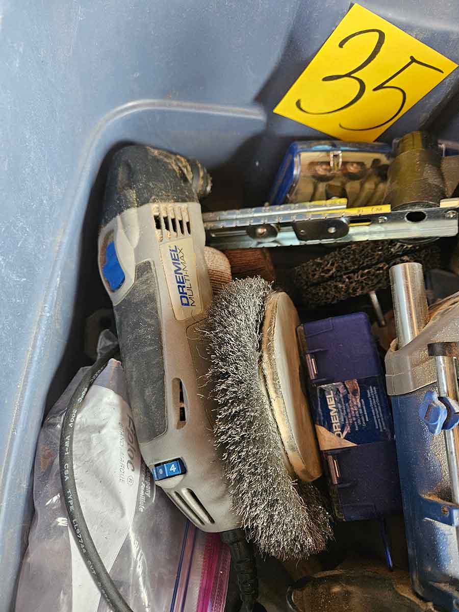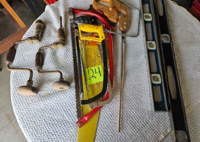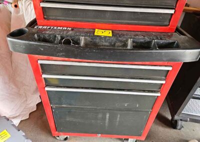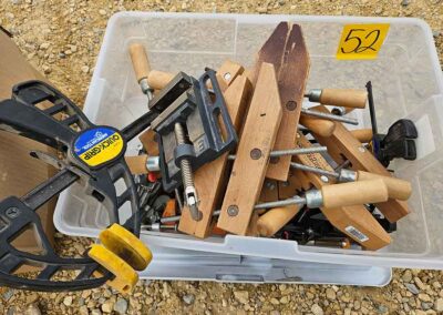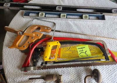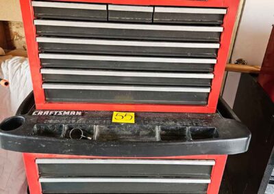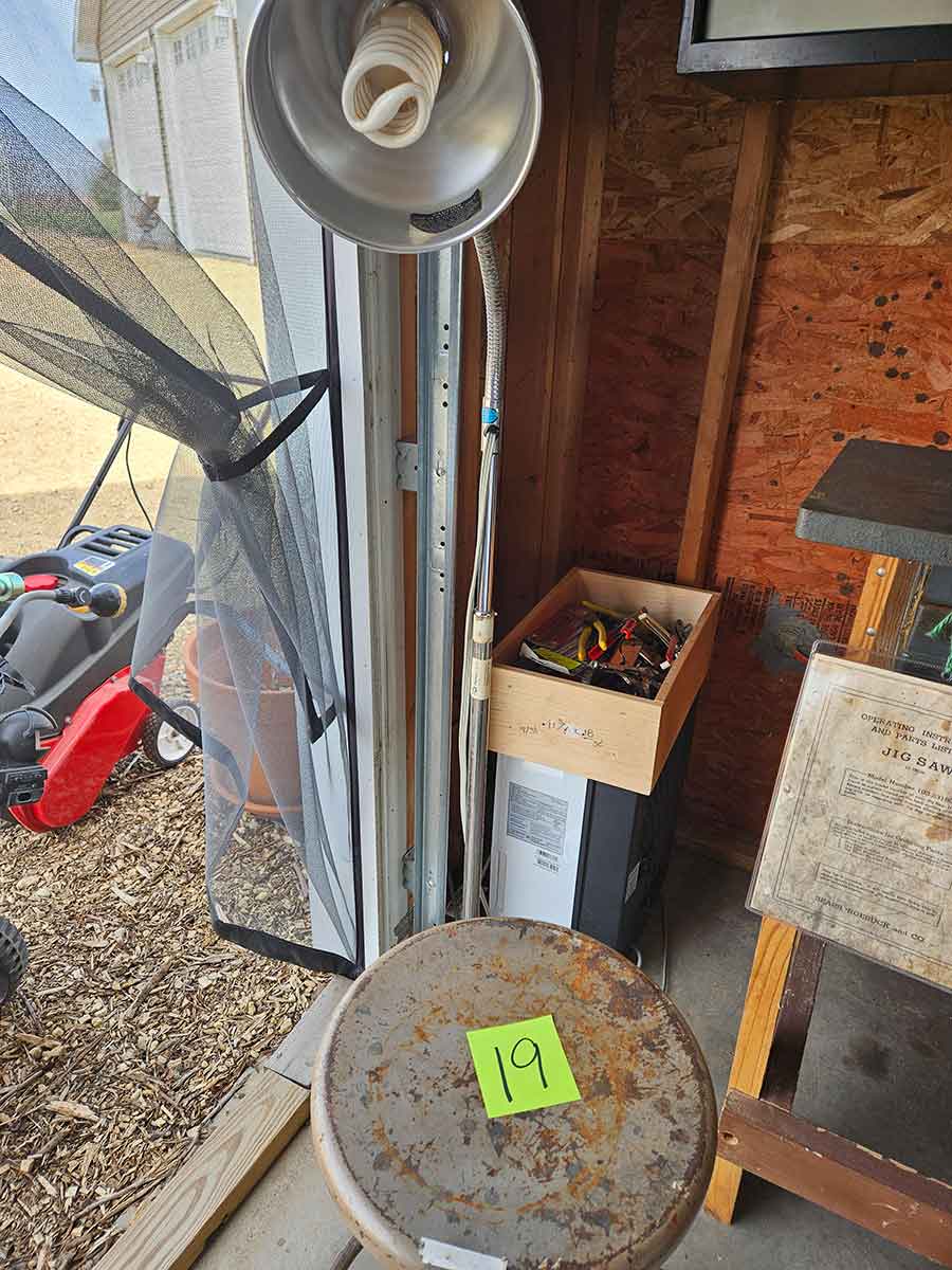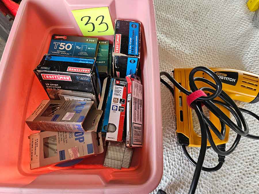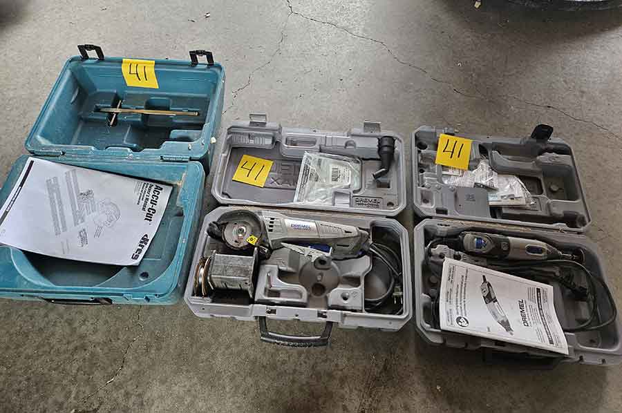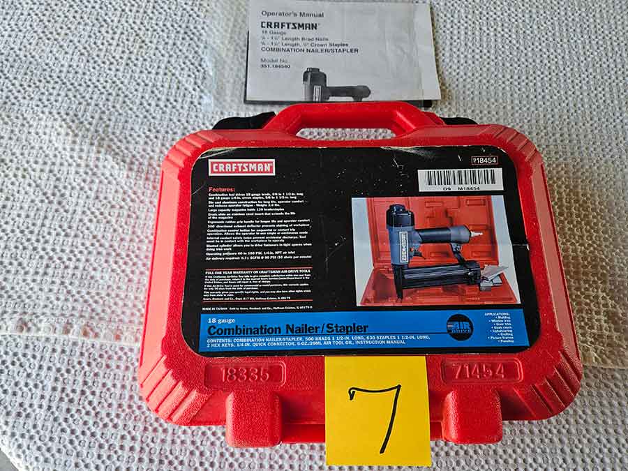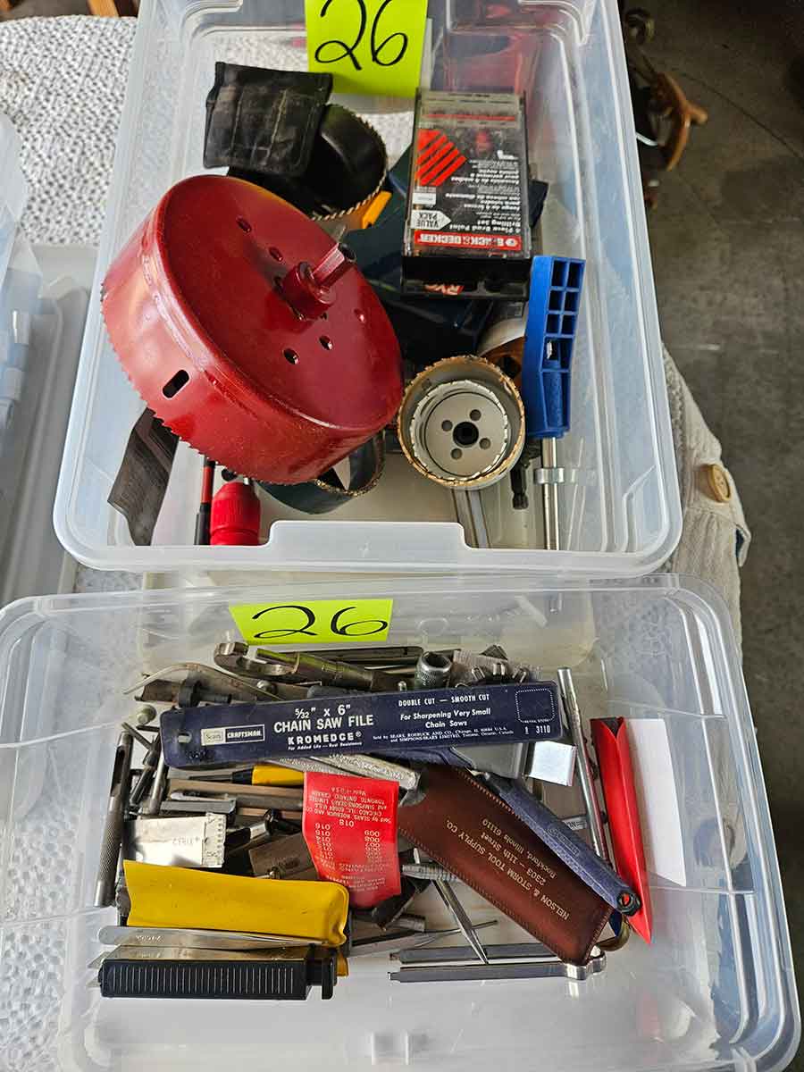 TOOL & SHOP ITEMS: Craftsman stackable tool chest on wheels, 8-drawers on top, 3-drawers & cabinet on bottom, nice; Craftsman 18 ga. comb. nailer/stapler; Craftsman 2½-ton floor jack; Craftsman 18” jig saw w/motor; Craftsman 12” wood lathe, mounted on a 7’x34”x22” work bench w/Skil high speed sander; Craftsman table router; Craftsman files, chisels, & punch; Craftsman hole saw attachments; Craftsman box wrenches, various sizes up to 1”; several Craftsman screwdrivers; Craftsman Router, 12 amp variable spd, 2 peak hp router combo with fixed base & plunge base; Craftsman 9” bench saw w/ex. blades; Craftsman 8½” sliding compound mitre saw on stand; Craftsman woodworking clamps; Makita planer; Dewalt Sawzall in case; Bosch HD plunge router; Bosch router guide w/rotary tool accessories; Schumacher Farm & Ranch battery charger, 12V/200A – 6V/150A, 40V boost 2<>Amp storage charge, like new, very nice; Makita circular saw, 7¼”, 5,007F; jumper cables, like new; Bernz-o-Matic tote torch; Stanley Bostitch stapler; Rigid Drill, 14.4V w/charger & ex. battery; Black & Decker 3/8 air drill; CPI air grinder; 10’ tape measure/level; Ryobi drill bits; 4 pc. Brad Point drilling set; bolt cutter; pvc pipes-app. 6½‘; 24 pc. carbide master set; axe; ½” pipe bender; crowbar; sledgehammer; Danby Dehumidifier; Easy Lite Type III 10’ alum. step ladder; Werner 24’ alum. ext. ladder; misc. hand tools; rivet guns; pliers; crimp tool; box cutters; shop stool & light; misc. bits; saws; antique bit brace; 2 & 4ft levels; shop radio; auto ranging multi-meter; caulk strips; transistor tester; various size sockets; breaker bar; 12” crescent wrench; ½” ratchet; Kobalt tap & die set, in case; allen wrenches; tow & ratchet straps; 2-25’ tape measures; 30’ tape measure; Dremel tool & accessories; 2-full lock jaw organizers; elec. cord & outlet; chainsaw attach. w/12” blade; hedge trimmer attach.; Dremel saw max; Makita case-empty; Rigid ShopVac, 5.5hp w/ex. filter; misc. boards & lumber; box full of adj. hand screw clamps; Stihl chainsaw & protective chaps garment;
