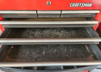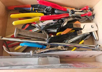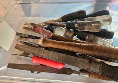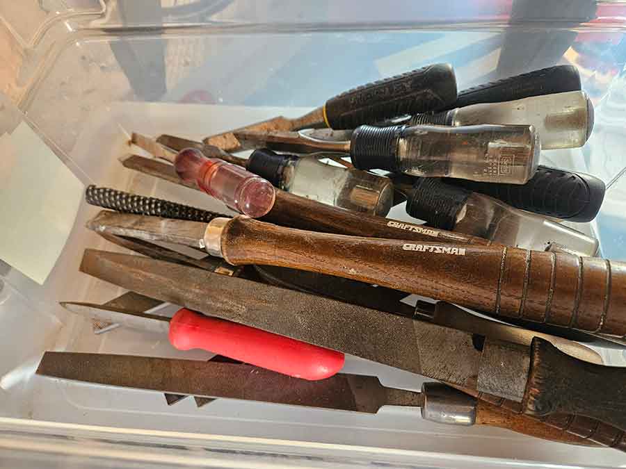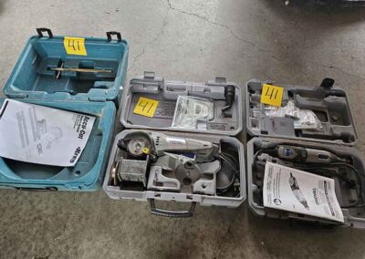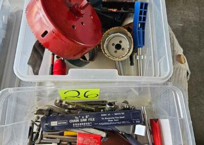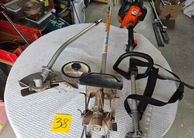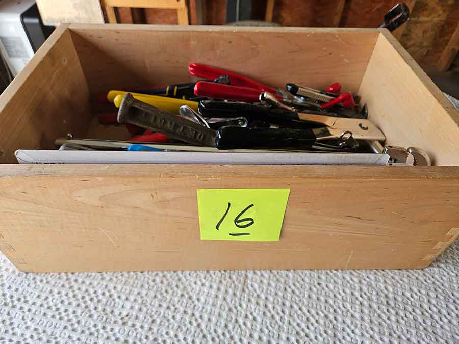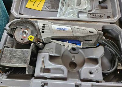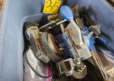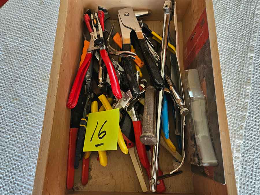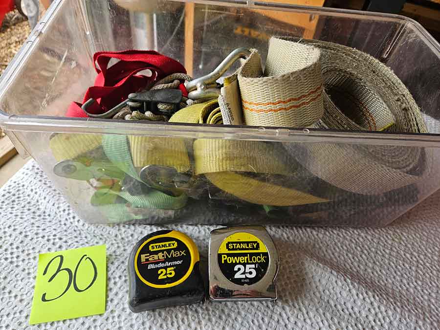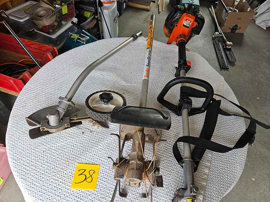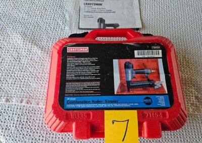 TOOL & SHOP ITEMS: Craftsman stackable tool chest on wheels, 8-drawers on top, 3-drawers & cabinet on bottom, nice; Craftsman 18 ga. comb. nailer/stapler; Craftsman 2½-ton floor jack; Craftsman 18” jig saw w/motor; Craftsman 12” wood lathe, mounted on a 7’x34”x22” work bench w/Skil high speed sander; Craftsman table router; Craftsman files, chisels, & punch; Craftsman hole saw attachments; Craftsman box wrenches, various sizes up to 1”; several Craftsman screwdrivers; Craftsman Router, 12 amp variable spd, 2 peak hp router combo with fixed base & plunge base; Craftsman 9” bench saw w/ex. blades; Craftsman 8½” sliding compound mitre saw on stand; Craftsman woodworking clamps; Makita planer; Dewalt Sawzall in case; Bosch HD plunge router; Bosch router guide w/rotary tool accessories; Schumacher Farm & Ranch battery charger, 12V/200A – 6V/150A, 40V boost 2<>Amp storage charge, like new, very nice; Makita circular saw, 7¼”, 5,007F; jumper cables, like new; Bernz-o-Matic tote torch; Stanley Bostitch stapler; Rigid Drill, 14.4V w/charger & ex. battery; Black & Decker 3/8 air drill; CPI air grinder; 10’ tape measure/level; Ryobi drill bits; 4 pc. Brad Point drilling set; bolt cutter; pvc pipes-app. 6½‘; 24 pc. carbide master set; axe; ½” pipe bender; crowbar; sledgehammer; Danby Dehumidifier; Easy Lite Type III 10’ alum. step ladder; Werner 24’ alum. ext. ladder; misc. hand tools; rivet guns; pliers; crimp tool; box cutters; shop stool & light; misc. bits; saws; antique bit brace; 2 & 4ft levels; shop radio; auto ranging multi-meter; caulk strips; transistor tester; various size sockets; breaker bar; 12” crescent wrench; ½” ratchet; Kobalt tap & die set, in case; allen wrenches; tow & ratchet straps; 2-25’ tape measures; 30’ tape measure; Dremel tool & accessories; 2-full lock jaw organizers; elec. cord & outlet; chainsaw attach. w/12” blade; hedge trimmer attach.; Dremel saw max; Makita case-empty; Rigid ShopVac, 5.5hp w/ex. filter; misc. boards & lumber; box full of adj. hand screw clamps; Stihl chainsaw & protective chaps garment;