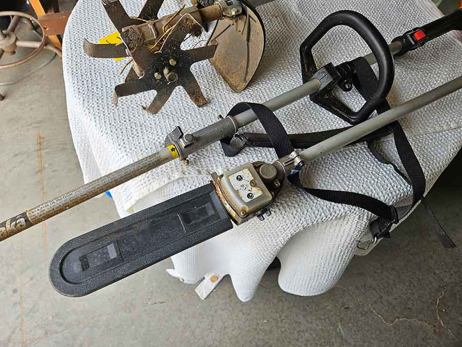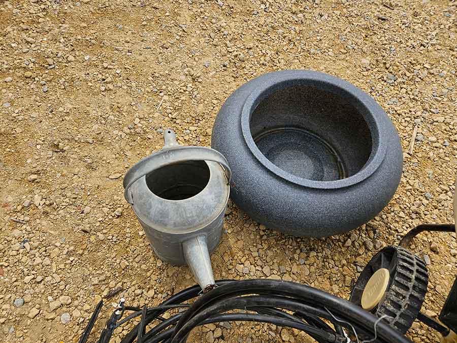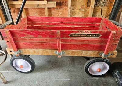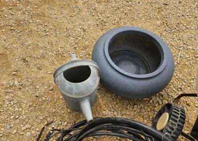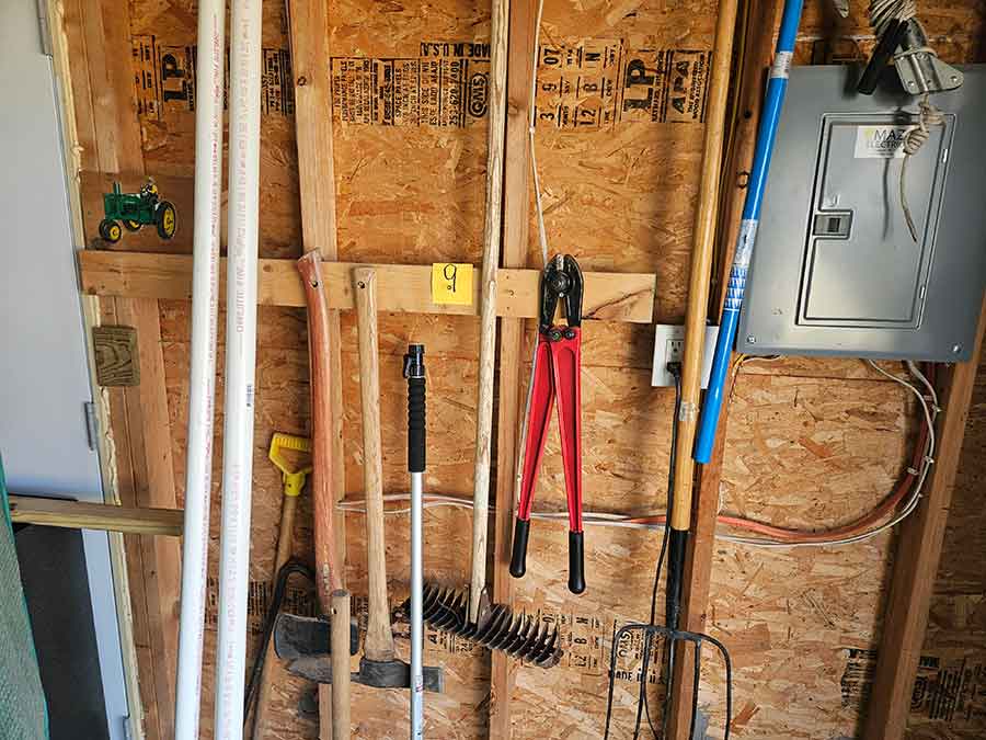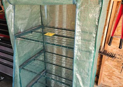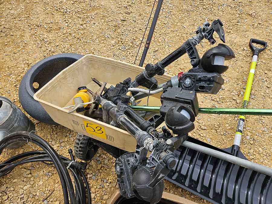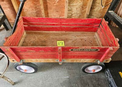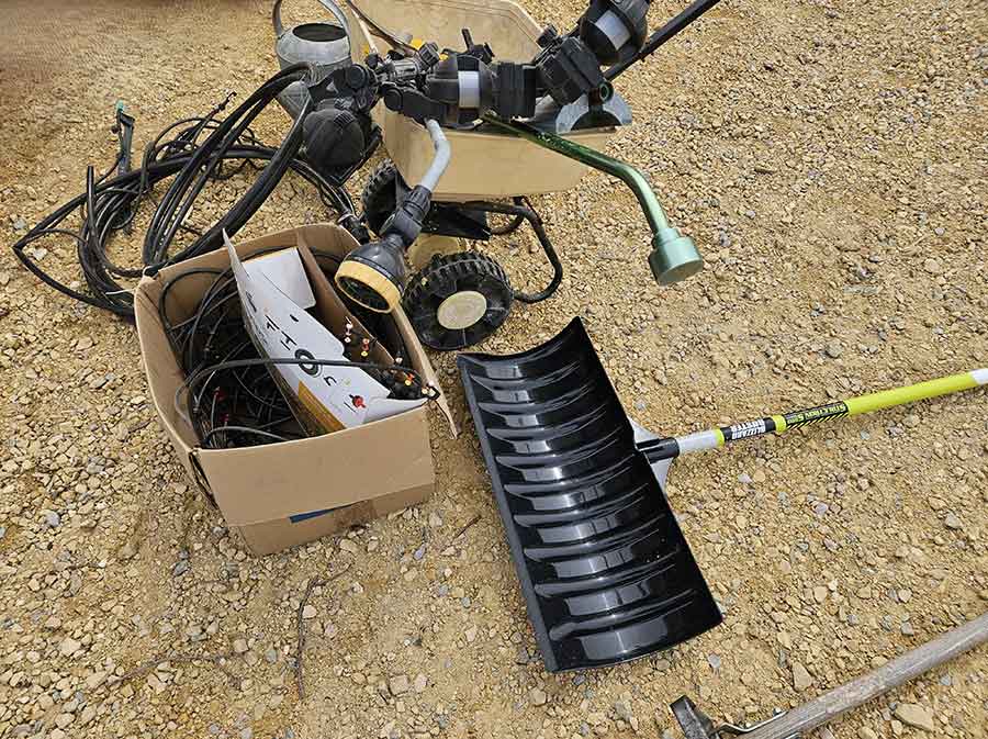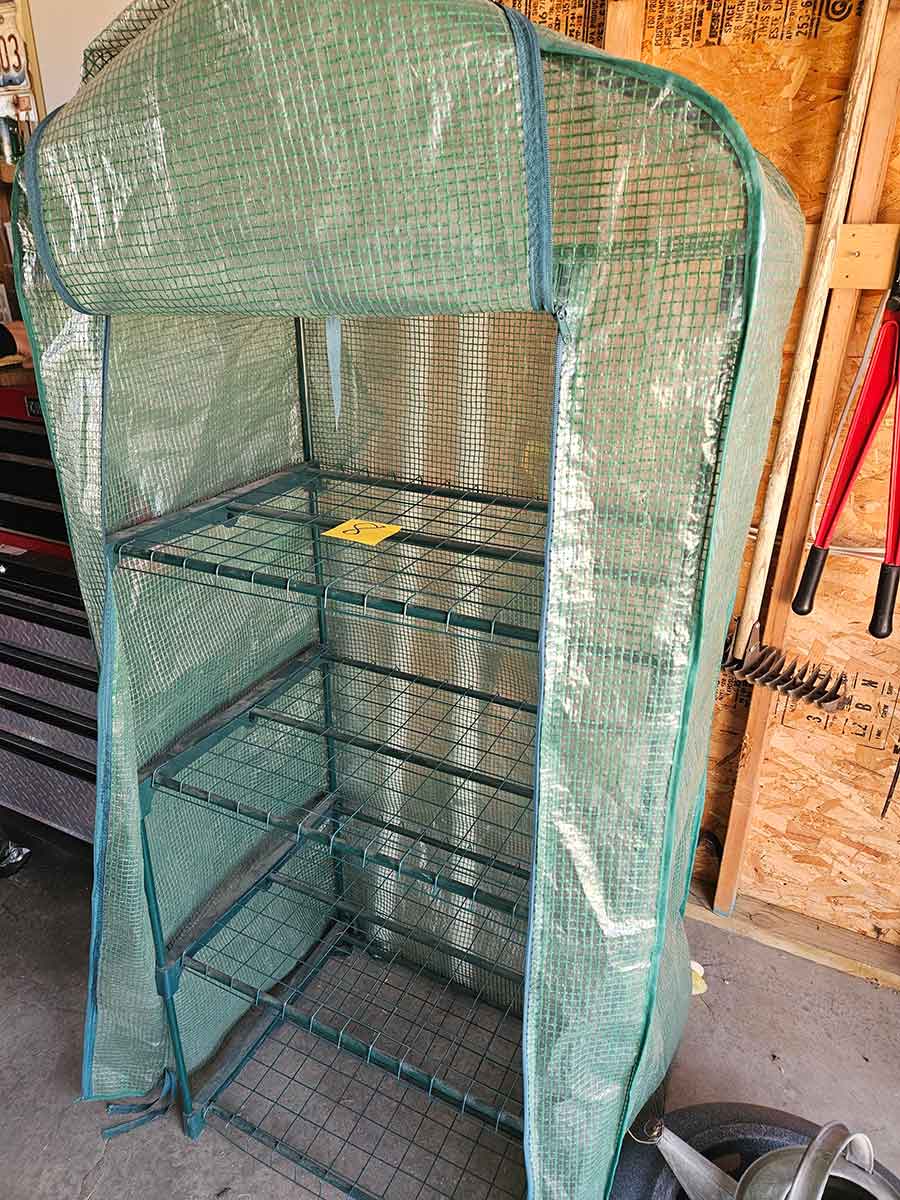 SNOWBLOWER, LAWN & GARDEN: MTD snowblower, 179cc, elec. start, 4-cycle; Stihl SG20 backpack sprayer; Tanaka TBC230SF weed eater w/tiller & edger attach.; port. greenhouse w/4-shelves, 5’Hx28”Wx19”D; 5-tine pitchfork; thatcher rake; post hole digger; cast iron rooster; Radio Flyer Town & Country wagon w/wood sides; John Deere lawn mower belt; 2-wrought iron plant stands, one with glass; 2-shepherds hooks; garden hose sprayer attach.; galv. water can; snow shovels; automatic watering kit;