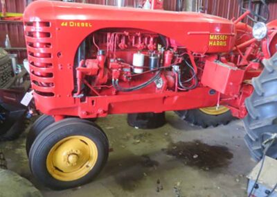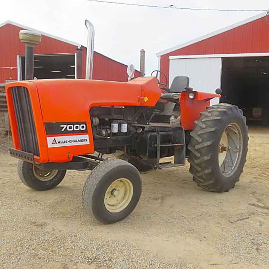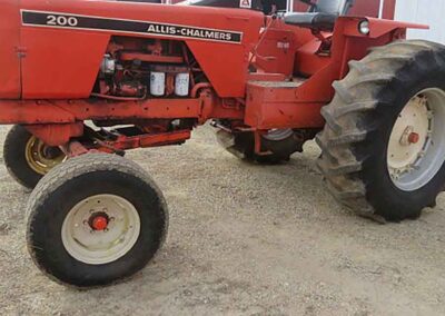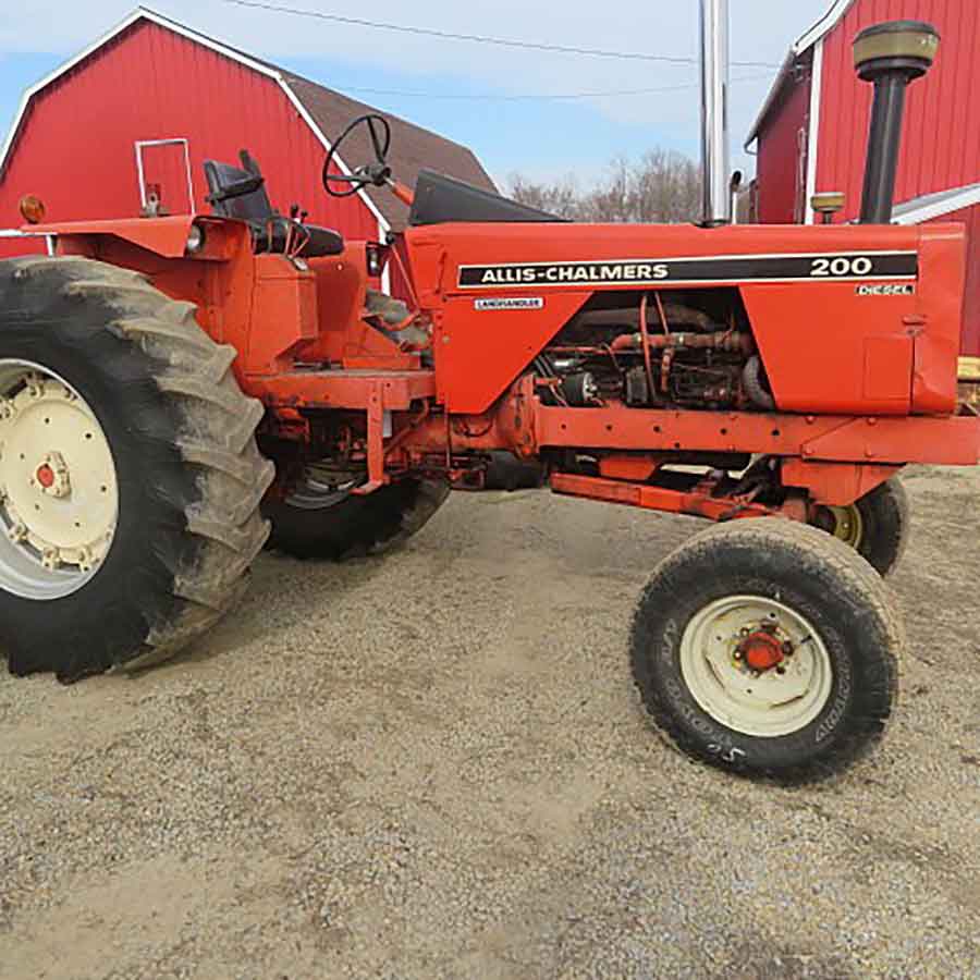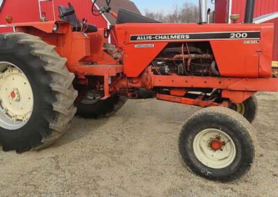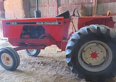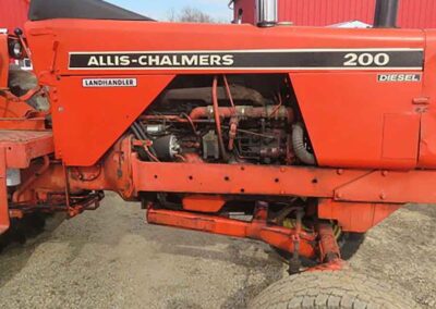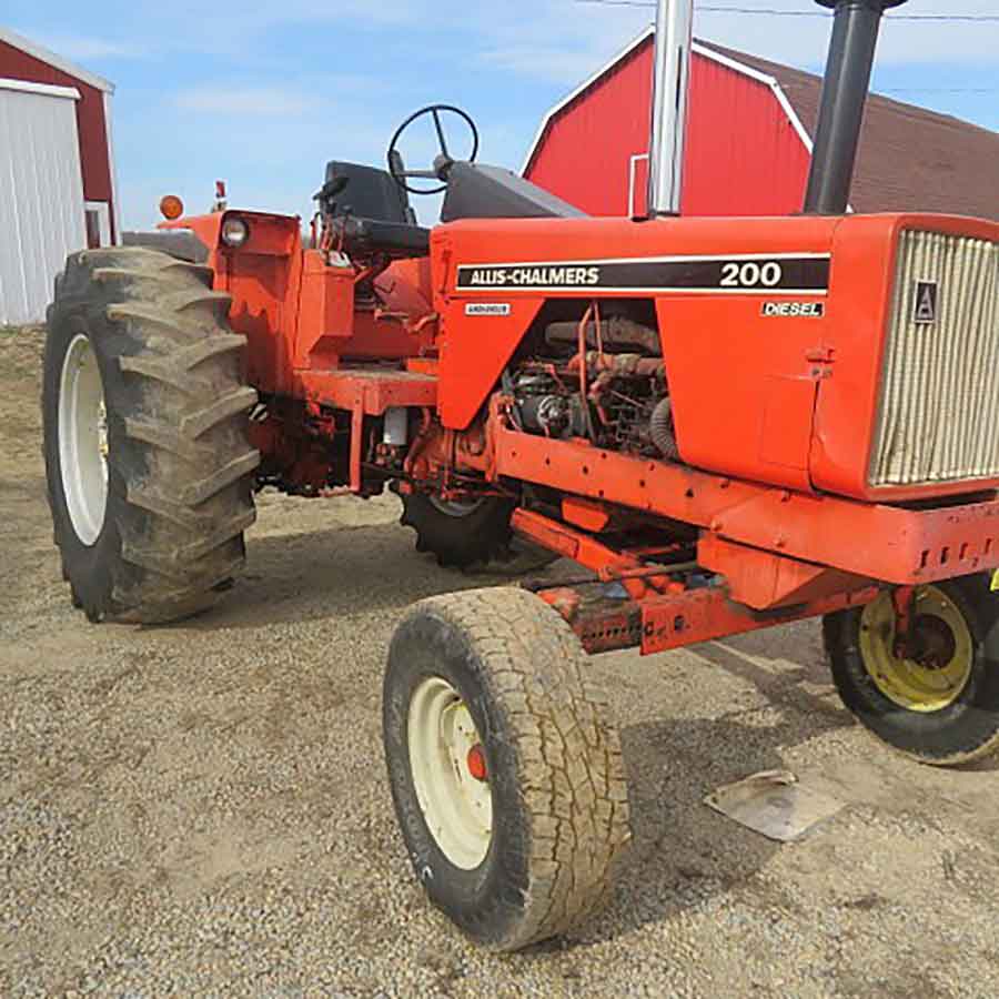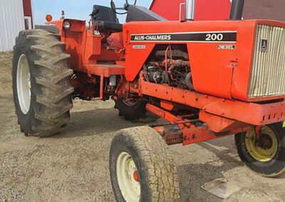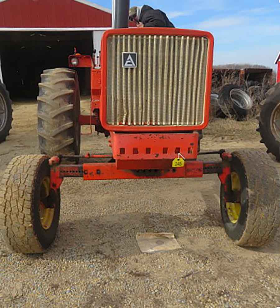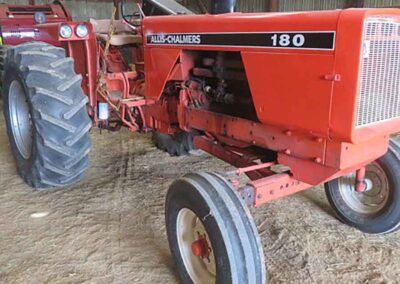 TRACTORS (tractors have decent paint): JD 4020, diesel, WF, power shift, 3pt., 20.8.34 tires; Farmall 400, NF, w/NI 2-row mounted picker, motor is free; Ford Jubilee, WF, 2pt., fenders, pto, nice condition; JD 60, NF, 3pt., good fenders; JD B; 1982 AC 6140, WF, SH, diesel, fenders; AC 7000, WF, steps, dual hyds., black belly, diesel, tach shows 3540 hrs.; AC 185, WF, 3pt., dual hyds., diesel, tach shows 7037 hrs.; AC 200 Land Handler, WF, diesel, tach shows 4790 hours, dual hyds., 3pt.; AC 180, WF, diesel, dual hyds., tach shows 3490 hrs., 3pt., nice; JD 1450, WF, tach shows 2361 hrs., fenders, dual hydraulics; JD MT, restored, NF, fenders, new seat, nice; Massey 44, diesel, NF, restored, fenders, nice; AC 5040, spun a bearing, for parts; ATTACHMENTS: JD pto shields;