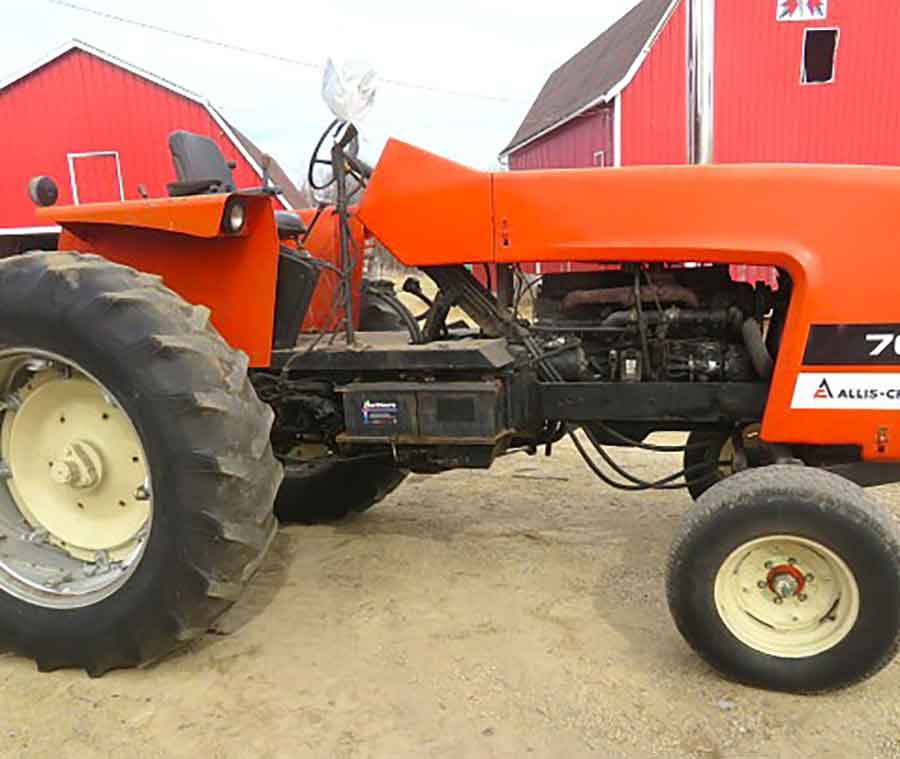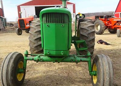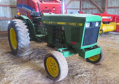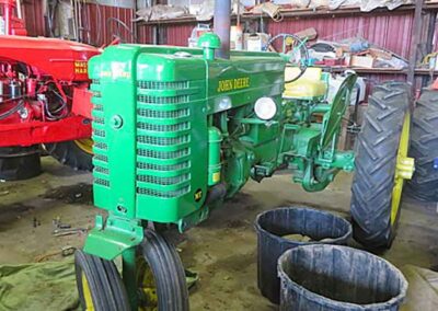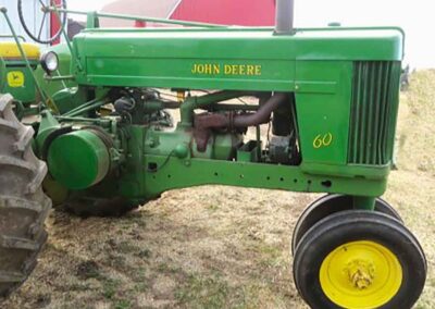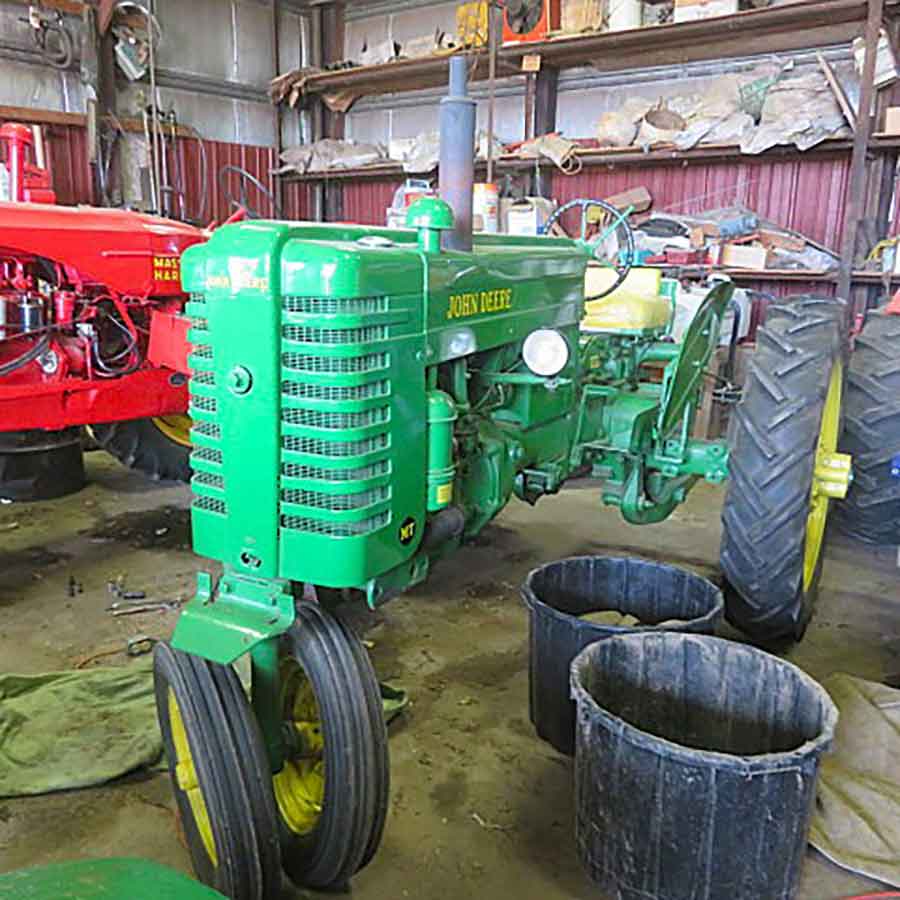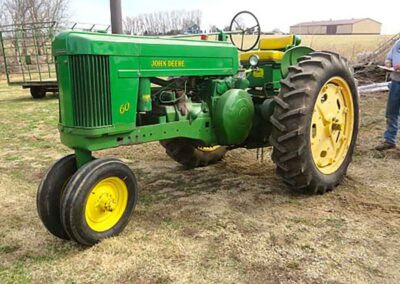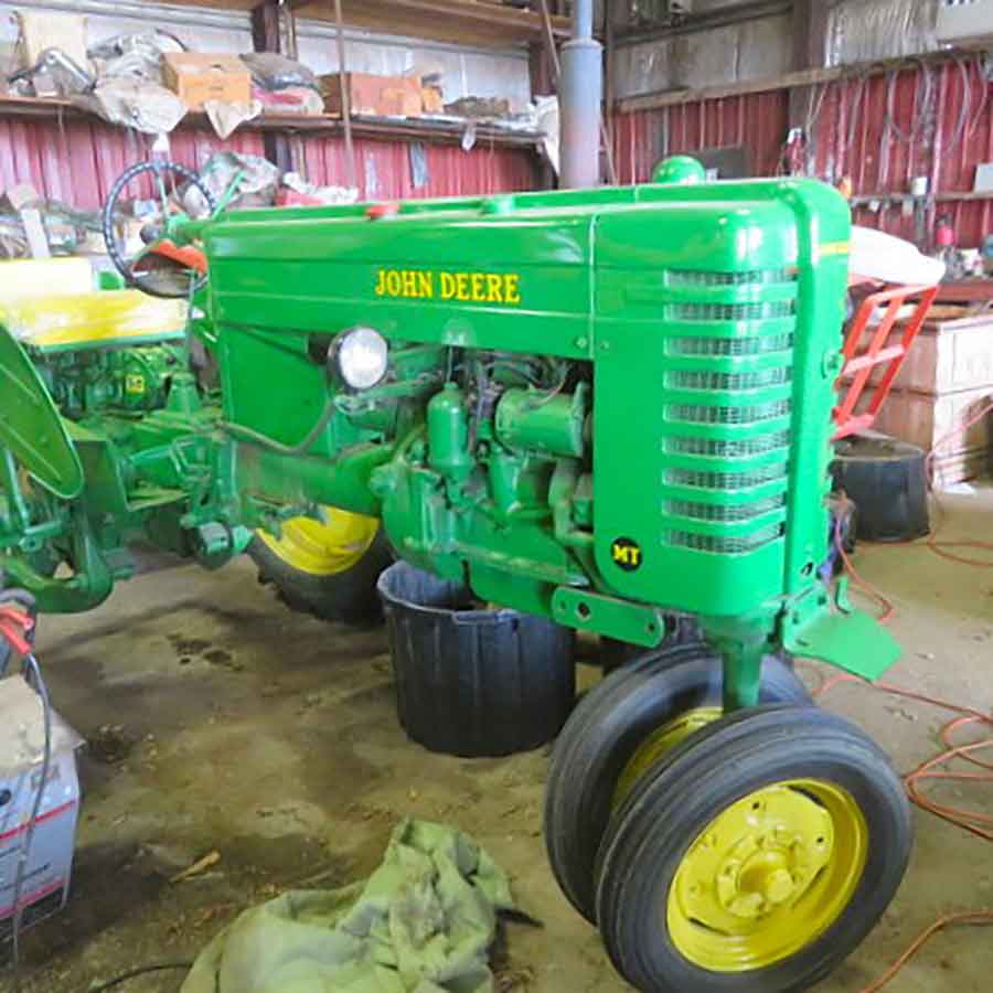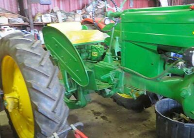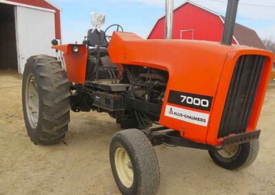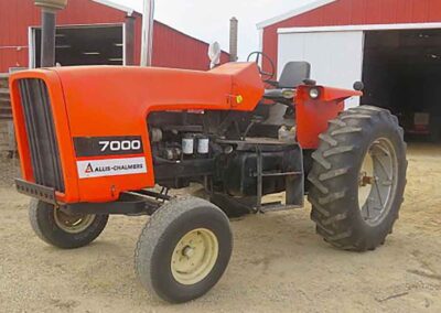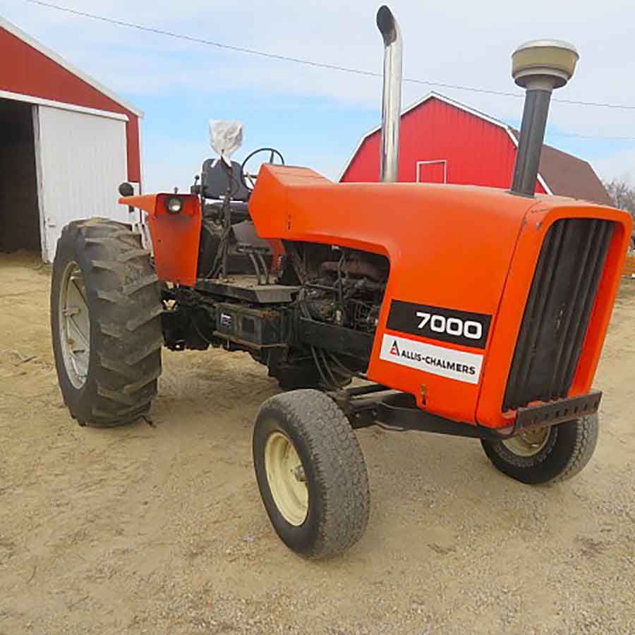TRACTORS (tractors have decent paint): JD 4020, diesel, WF, power shift, 3pt., 20.8.34 tires; Farmall 400, NF, w/NI 2-row mounted picker, motor is free; Ford Jubilee, WF, 2pt., fenders, pto, nice condition; JD 60, NF, 3pt., good fenders; JD B; 1982 AC 6140, WF, SH, diesel, fenders; AC 7000, WF, steps, dual hyds., black belly, diesel, tach shows 3540 hrs.; AC 185, WF, 3pt., dual hyds., diesel, tach shows 7037 hrs.; AC 200 Land Handler, WF, diesel, tach shows 4790 hours, dual hyds., 3pt.; AC 180, WF, diesel, dual hyds., tach shows 3490 hrs., 3pt., nice; JD 1450, WF, tach shows 2361 hrs., fenders, dual hydraulics; JD MT, restored, NF, fenders, new seat, nice; Massey 44, diesel, NF, restored, fenders, nice; AC 5040, spun a bearing, for parts; ATTACHMENTS: JD pto shields;
