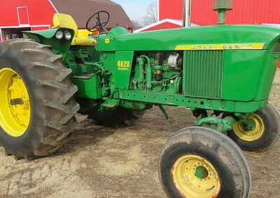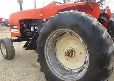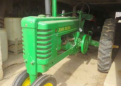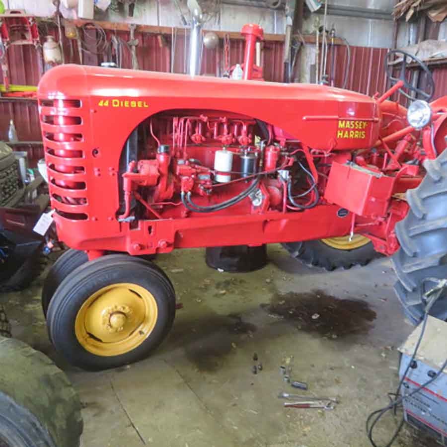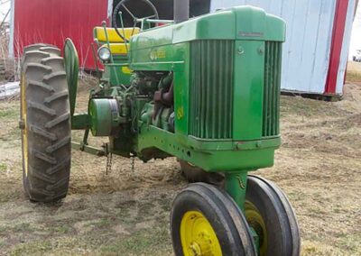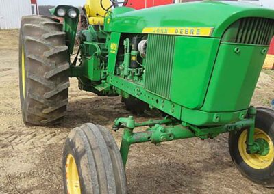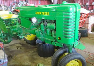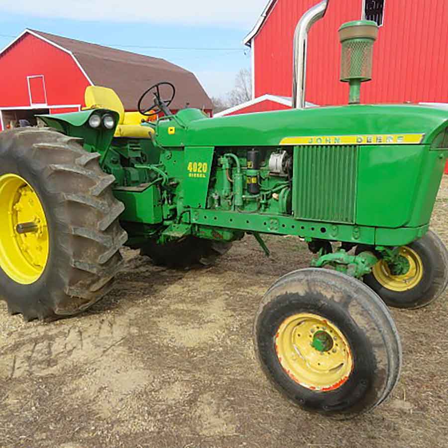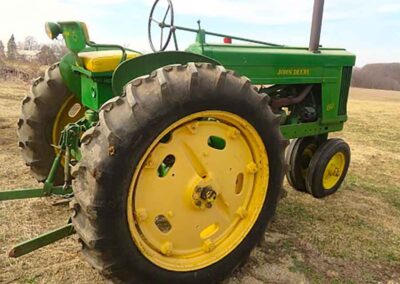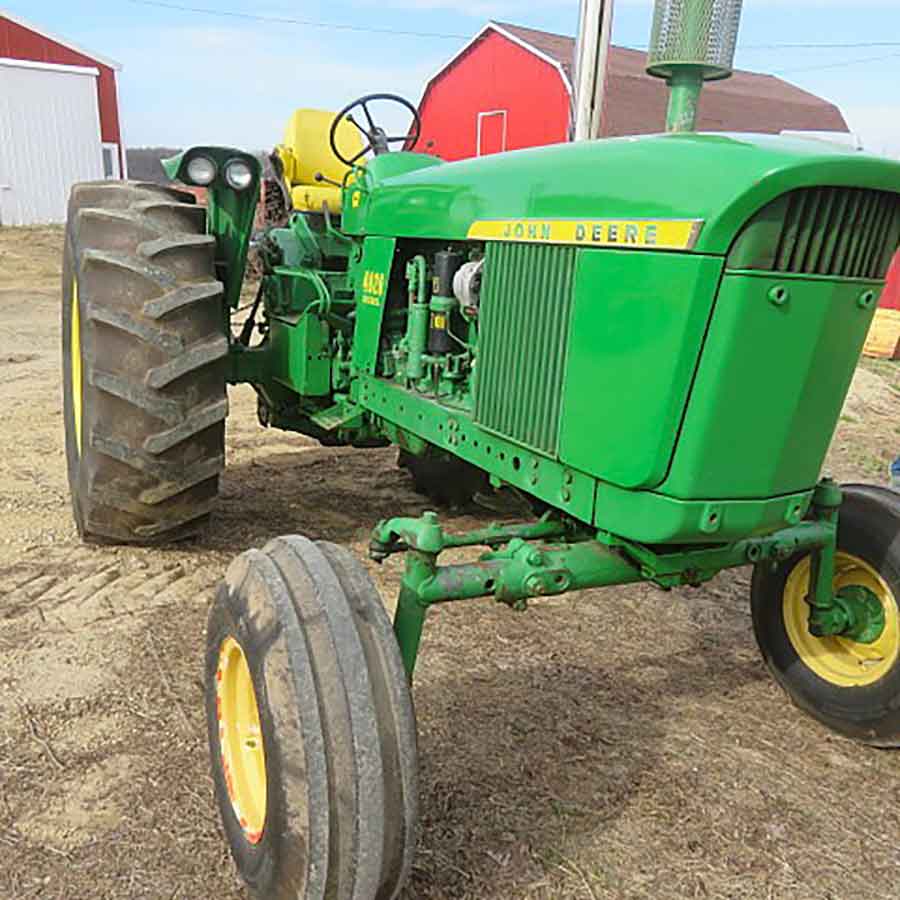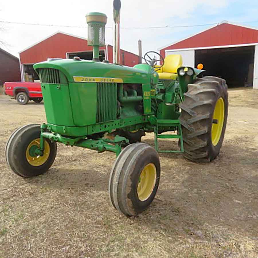 TRACTORS (tractors have decent paint): JD 4020, diesel, WF, power shift, 3pt., 20.8.34 tires; Farmall 400, NF, w/NI 2-row mounted picker, motor is free; Ford Jubilee, WF, 2pt., fenders, pto, nice condition; JD 60, NF, 3pt., good fenders; JD B; 1982 AC 6140, WF, SH, diesel, fenders; AC 7000, WF, steps, dual hyds., black belly, diesel, tach shows 3540 hrs.; AC 185, WF, 3pt., dual hyds., diesel, tach shows 7037 hrs.; AC 200 Land Handler, WF, diesel, tach shows 4790 hours, dual hyds., 3pt.; AC 180, WF, diesel, dual hyds., tach shows 3490 hrs., 3pt., nice; JD 1450, WF, tach shows 2361 hrs., fenders, dual hydraulics; JD MT, restored, NF, fenders, new seat, nice; Massey 44, diesel, NF, restored, fenders, nice; AC 5040, spun a bearing, for parts; ATTACHMENTS: JD pto shields;