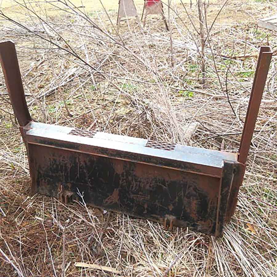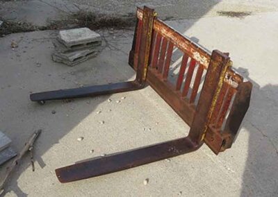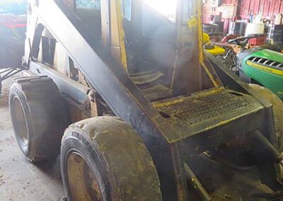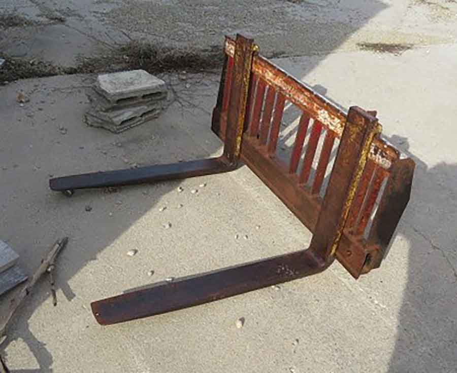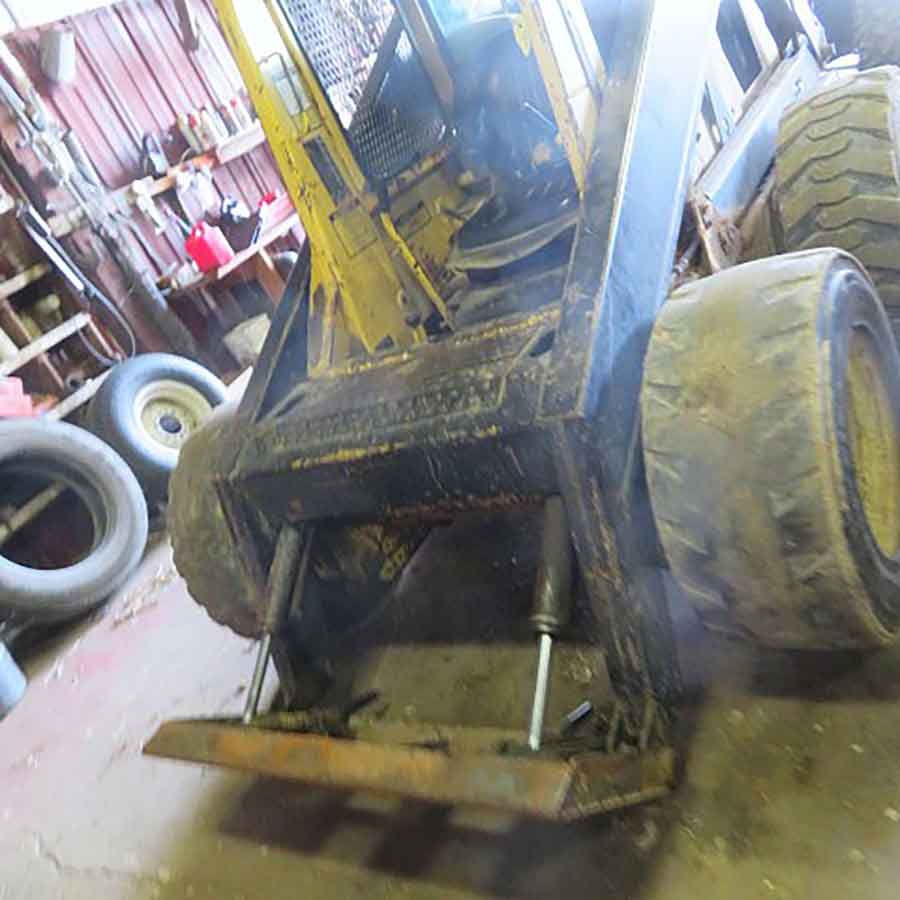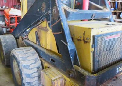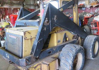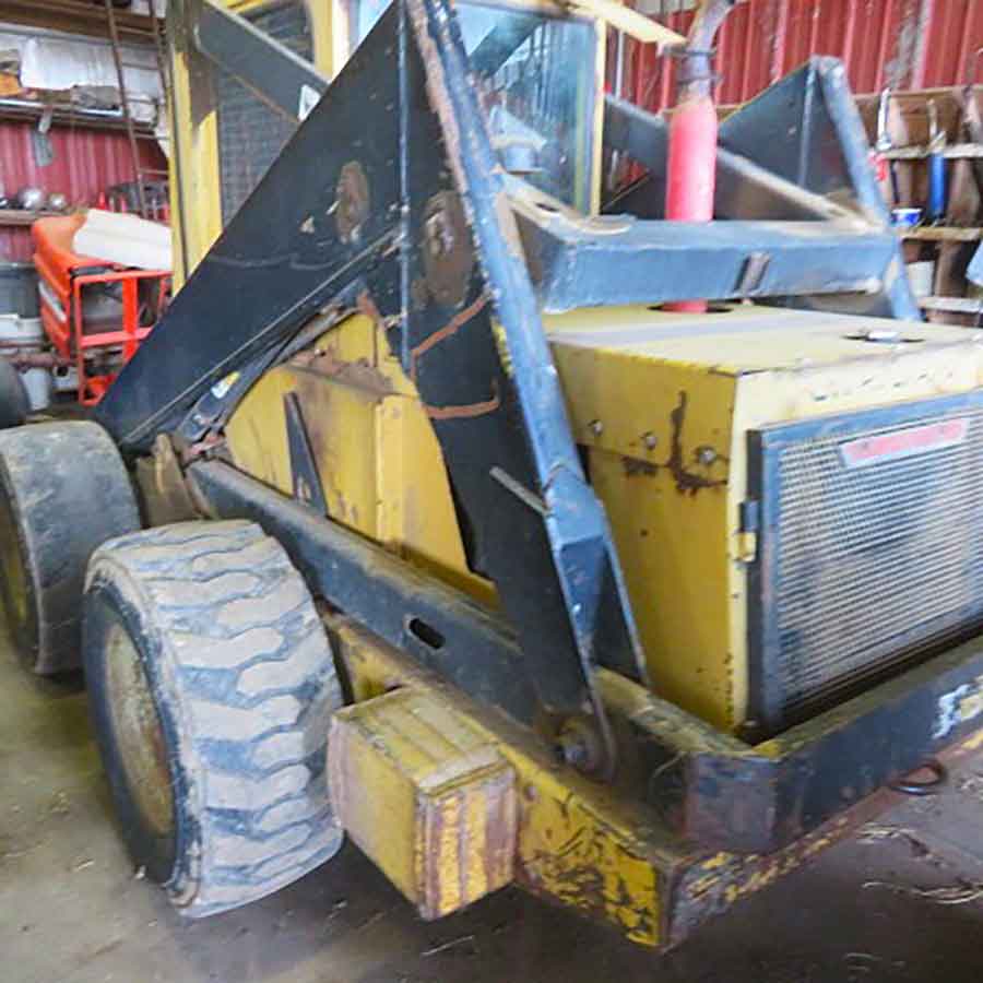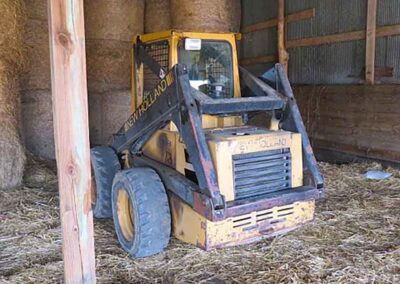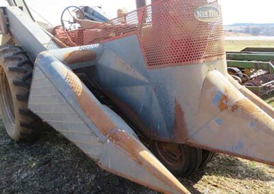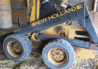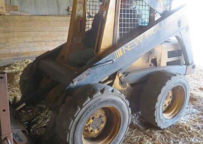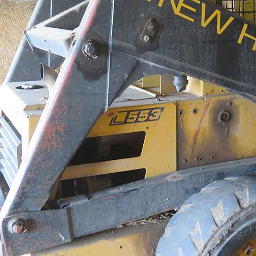SKIDLOADERS & ATTACHMENTS.: NH L785 w/cage, diesel, tach shows 6745 hrs., rear counterweights; NH L553 w/cage, diesel, tach shows 8448 hrs.; ATTACHMENTS: 2-8’ skidloader ramps; set of skidloader tracks; 2-pallet fork attach.; 2-sets of alum. ramps; 3-tine bale fork;
