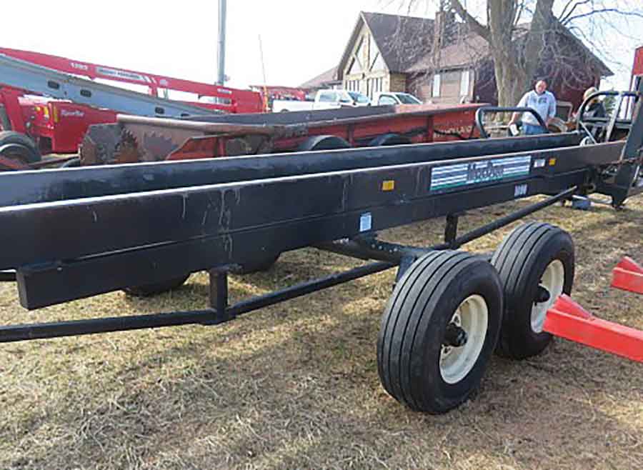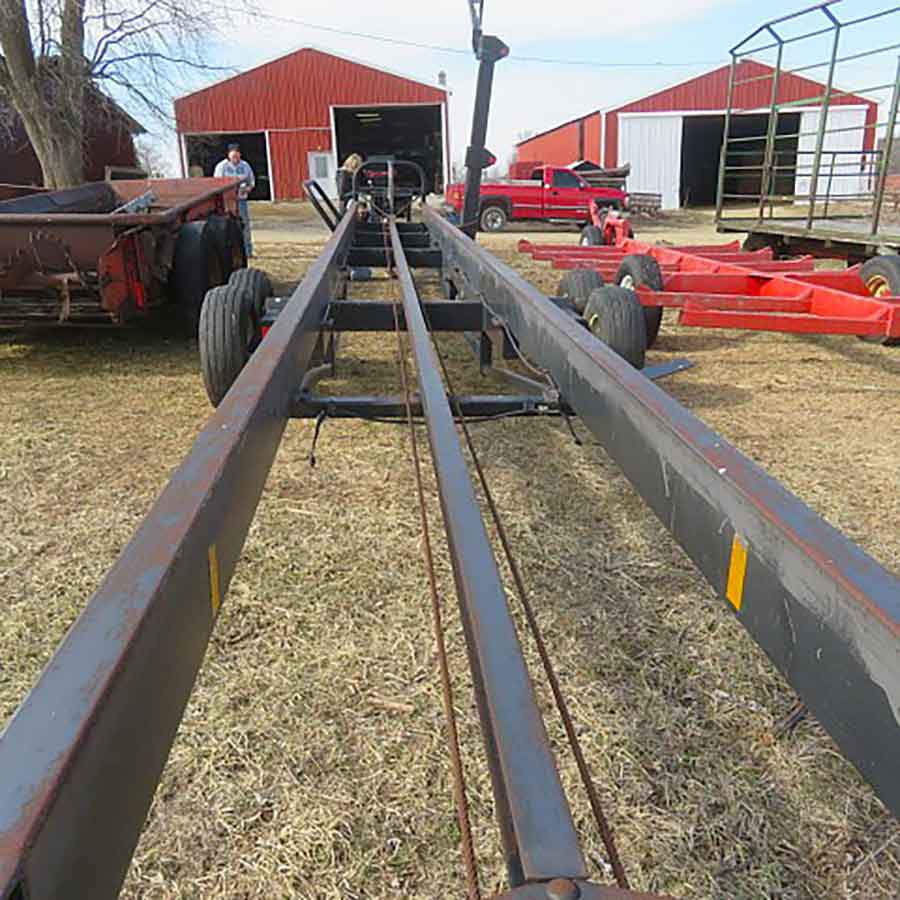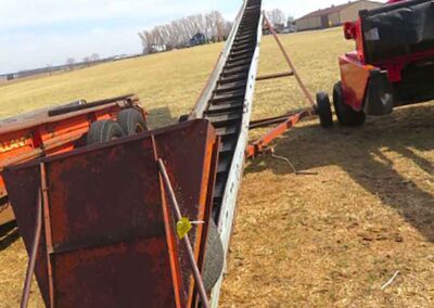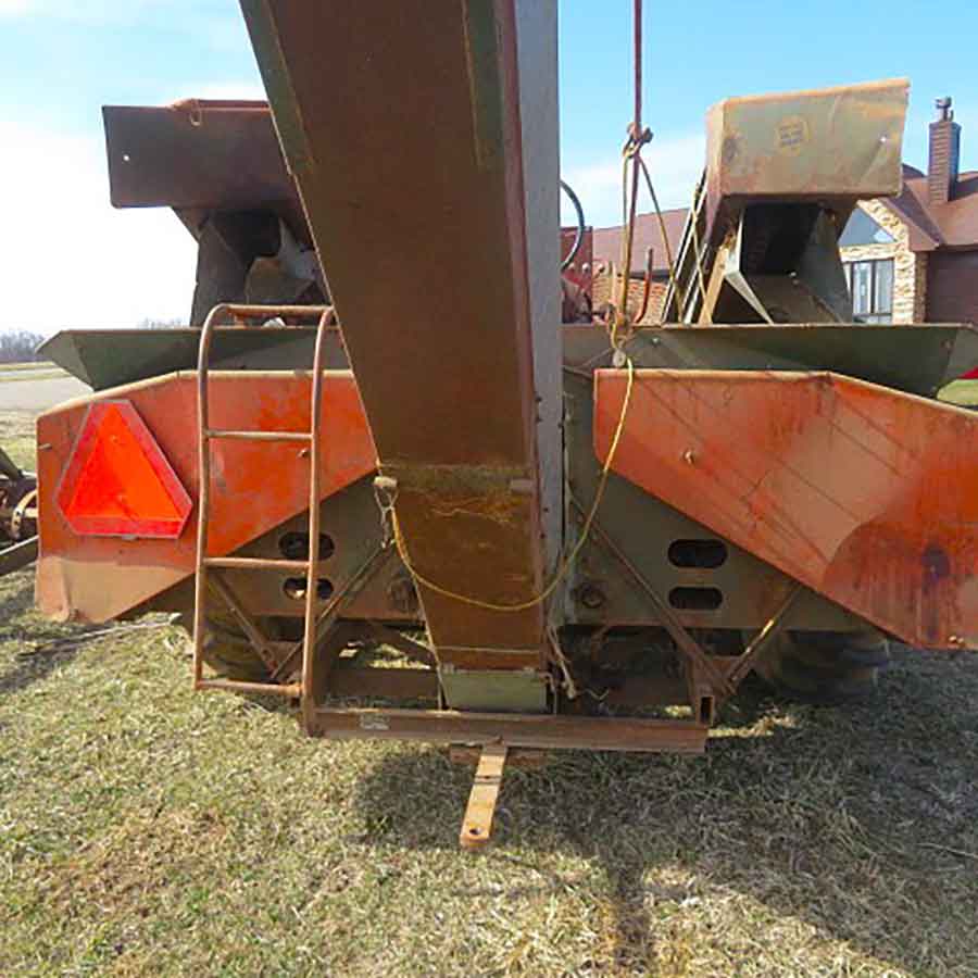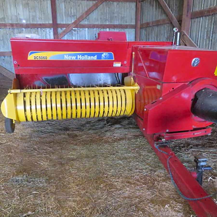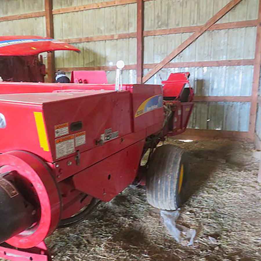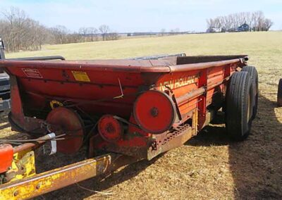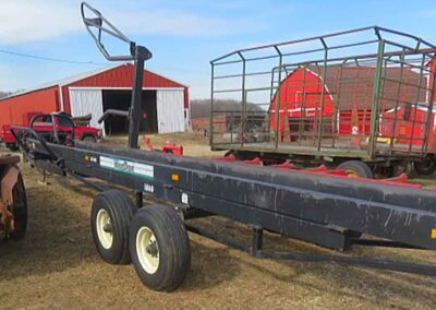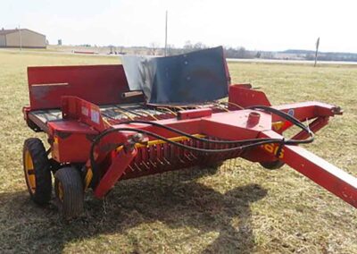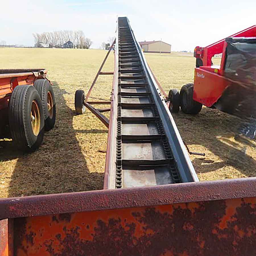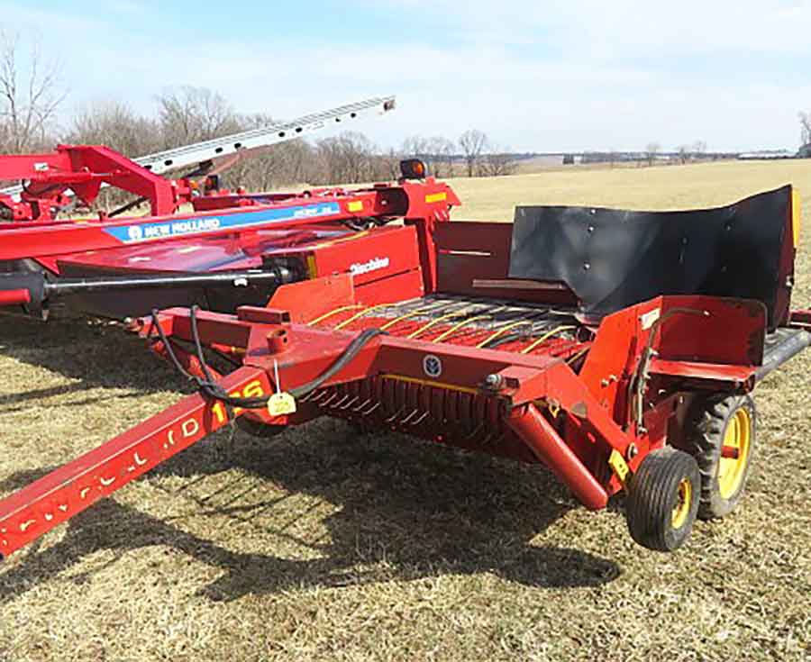 FARM MACHINERY & EQUIP: NH 166 hay invertor, hyd. apron, bought new; New Idea 40’ Elevator, pto, w/bale chute; NH manure spreader, tandem; MacDon 1000 bale accumulator; 6-rd bale carts w/dolly; 40’ single chain elevator w/motor on transit; 50’ SC conveyor w/motor on transit; asst of parts single chain bale conveyors; 500 gal. fuel barrel (ground) w/pump; 300 gal. fuel barrel (overhead) w/stand; 6’ rotary mower, 3pt.; 7’ mat. bucket off a loader; elec. motor, app 7½ hp; 3-tine hay fork attachment; 3-tine bale spear; 48” barn fan; 3pt 55 gal. sprayer w/booms; Fimco 45 gal. sprayer, w/12’ booms;