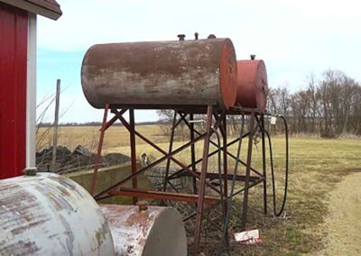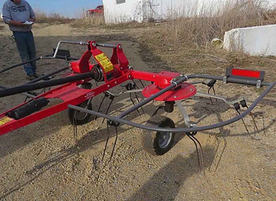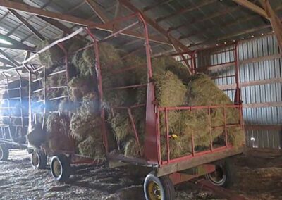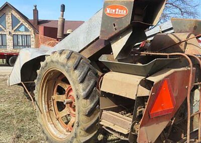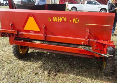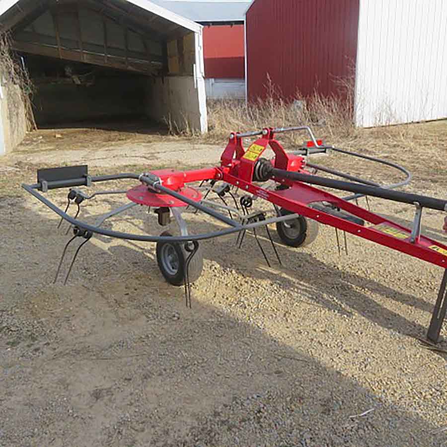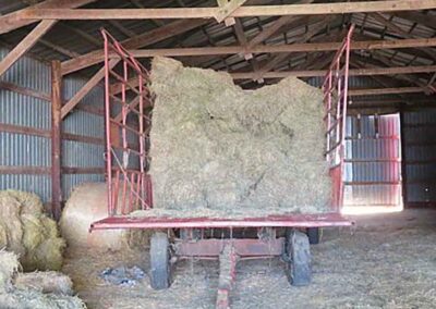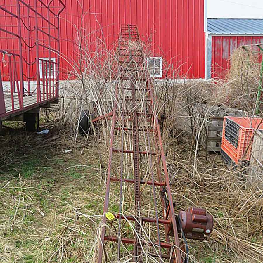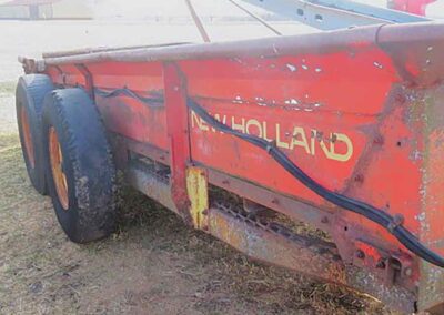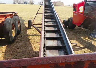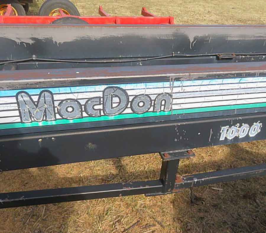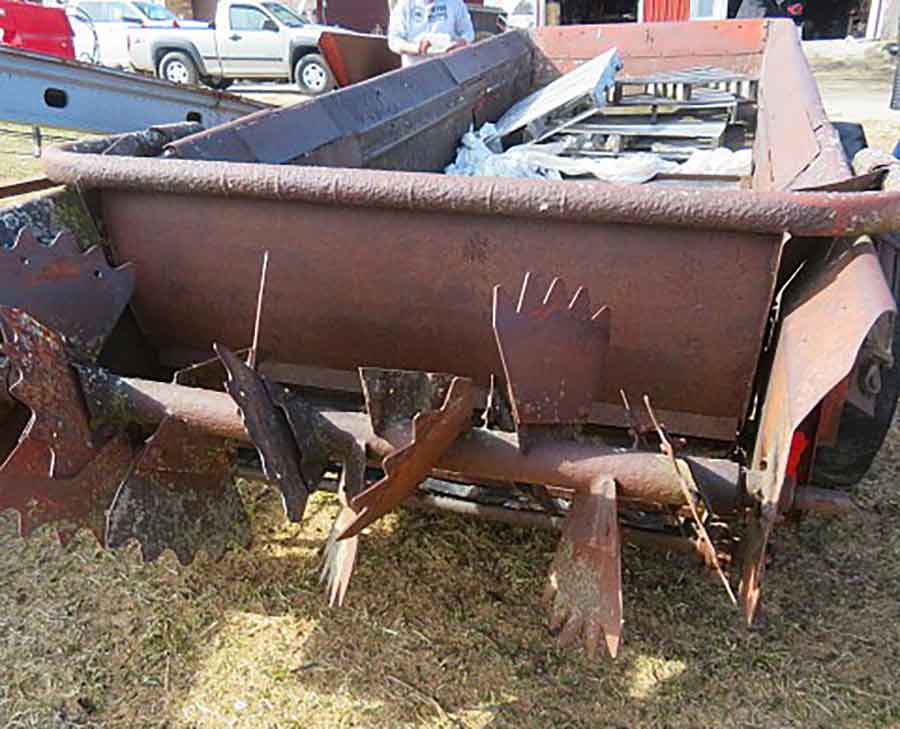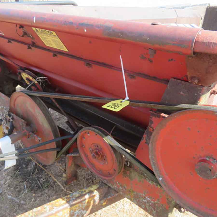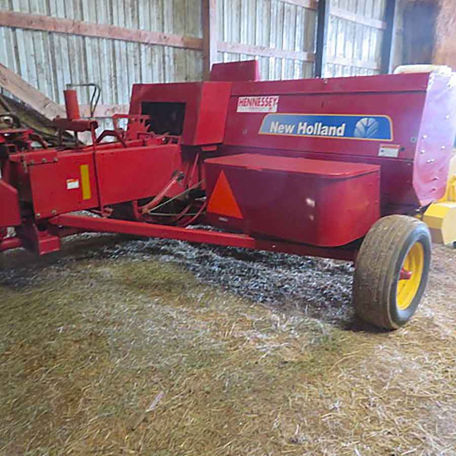 FARM MACHINERY & EQUIP: NH 166 hay invertor, hyd. apron, bought new; New Idea 40’ Elevator, pto, w/bale chute; NH manure spreader, tandem; MacDon 1000 bale accumulator; 6-rd bale carts w/dolly; 40’ single chain elevator w/motor on transit; 50’ SC conveyor w/motor on transit; asst of parts single chain bale conveyors; 500 gal. fuel barrel (ground) w/pump; 300 gal. fuel barrel (overhead) w/stand; 6’ rotary mower, 3pt.; 7’ mat. bucket off a loader; elec. motor, app 7½ hp; 3-tine hay fork attachment; 3-tine bale spear; 48” barn fan; 3pt 55 gal. sprayer w/booms; Fimco 45 gal. sprayer, w/12’ booms;
