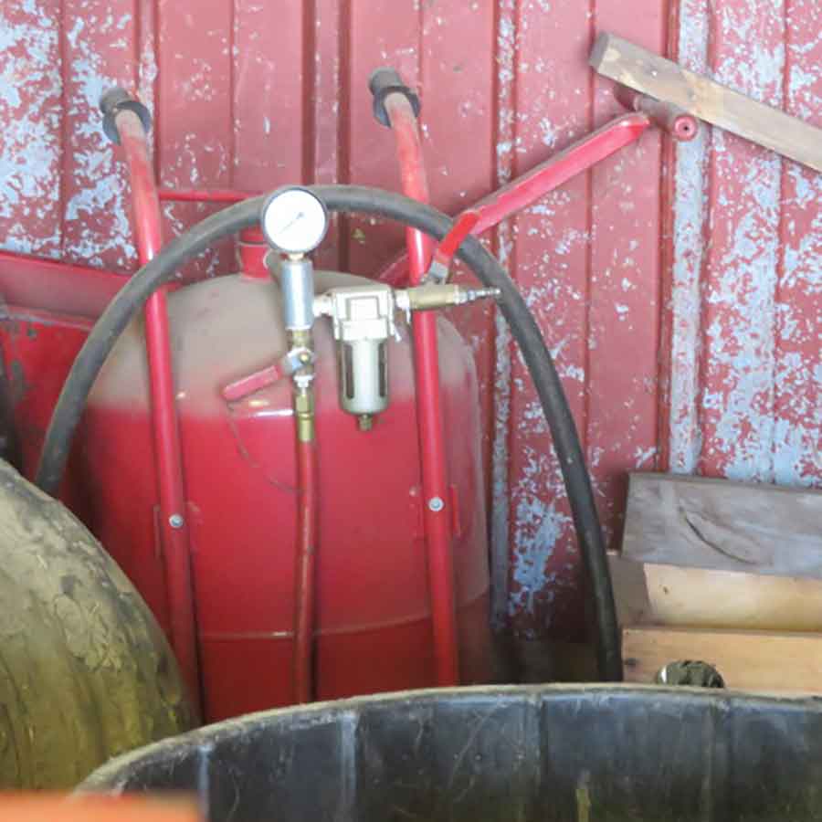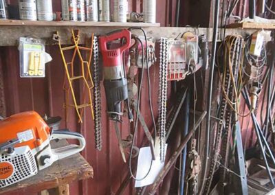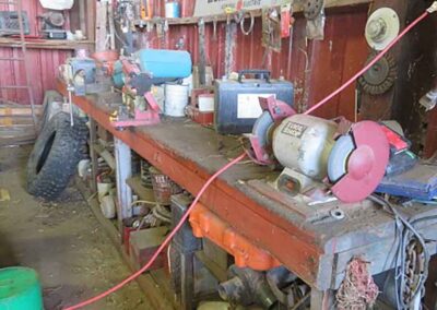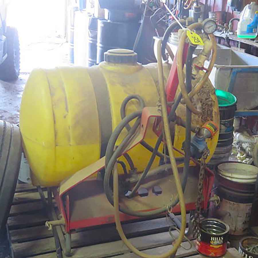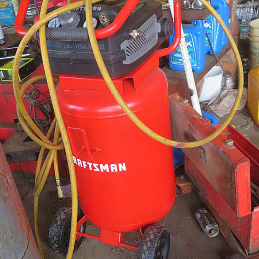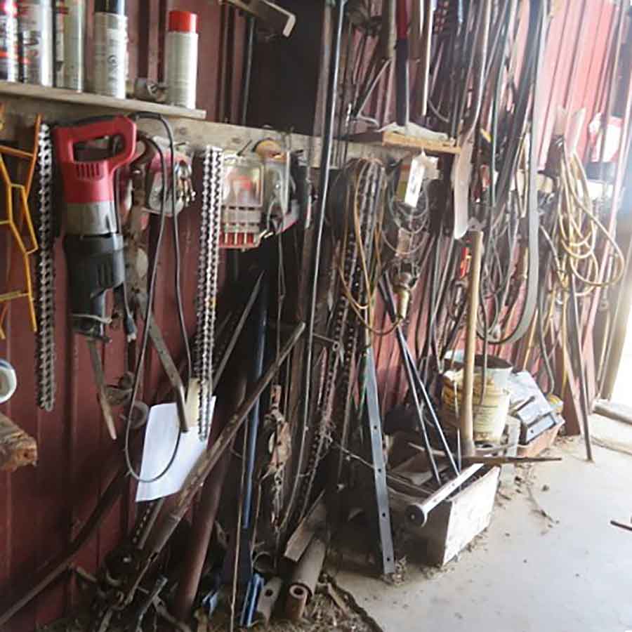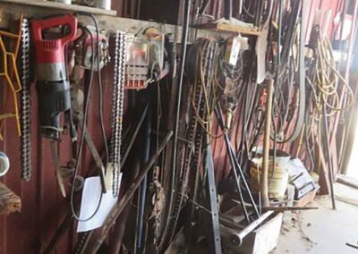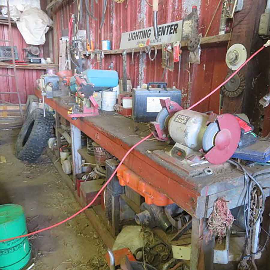 TOOL & SHOP: Coleman Powermate 6250 generator; Generac power washer; 60 gal. Sanborn upright air comp., 155 PSI; Craftsman air comp., upright, 20 gal., 175 PSI, like new; Knipco heater; shop vac; power washer; air hoses; grease guns; log chains; LP white heater; elec. cords; big red tire changer, needs work; Stihl MS 391 chain saw; Milwaukee Sawzall; sand blaster; lg. ass’t of shop tools;