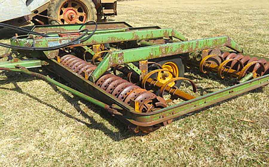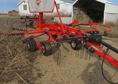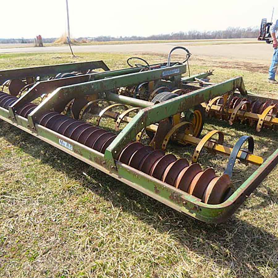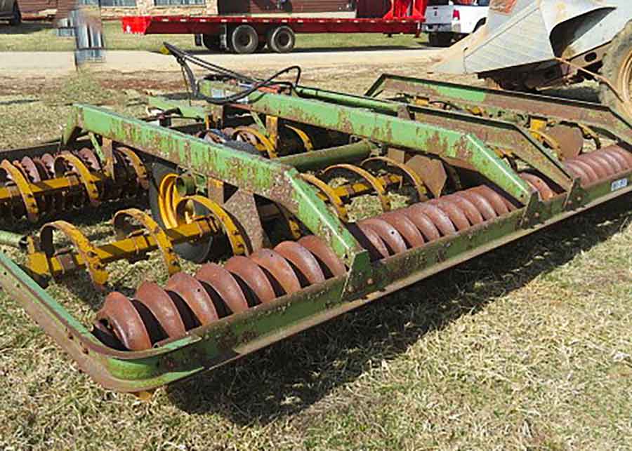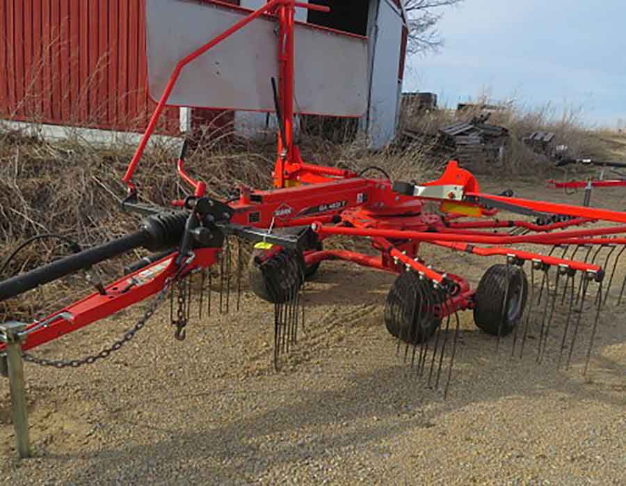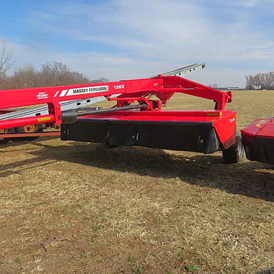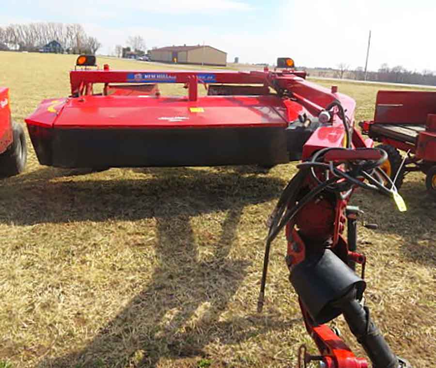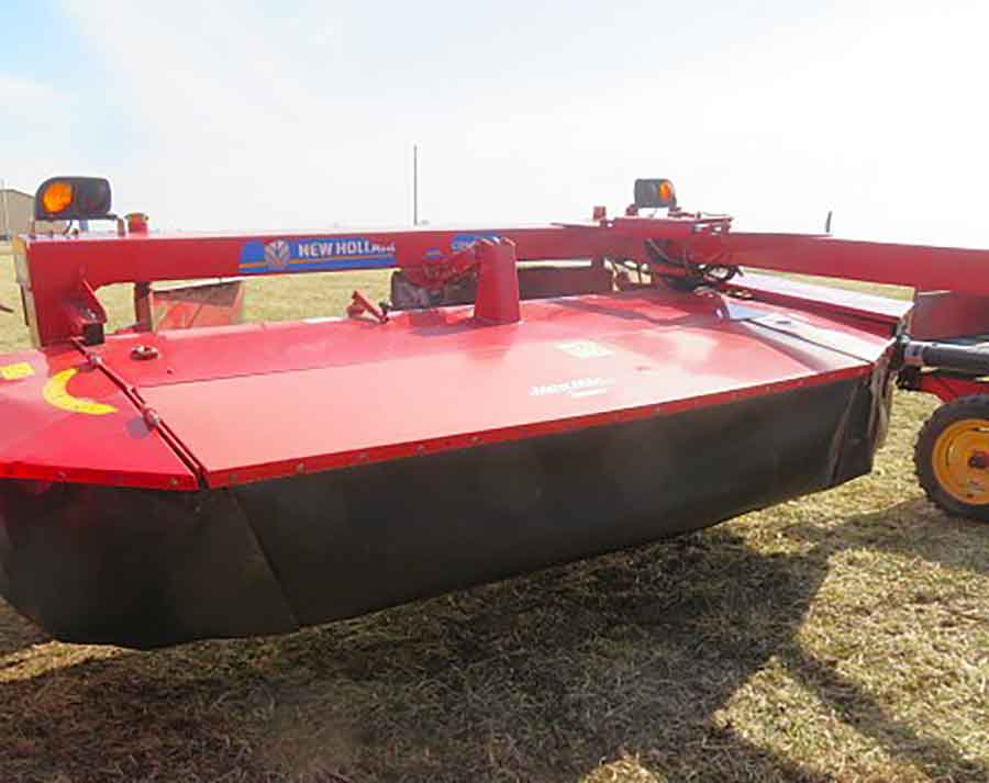 TILLAGE & FORAGE: Kewanee 15’ Cultimulcher w/inboard wheels; NH 210 discbine; Massey-Ferguson 1383 Discbine, razor bar, steel rolls, sharp; NH Roll Belt 450 rd. baler, 6,881 bales, bale slice, net, nice; NH BC5060 kicker bale, small square, nice; JD Soil Management System Chisel Plow, 3pt. 10-shank; Massey 2-basket tedder, bought new, like new; Kuhn GA 4231T Rotary Rake;