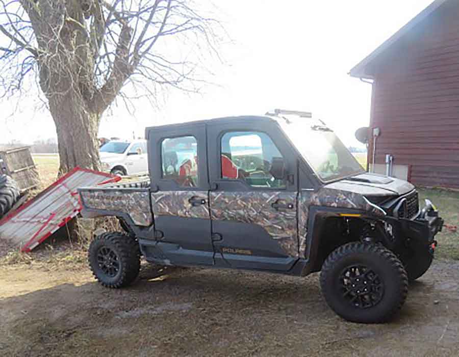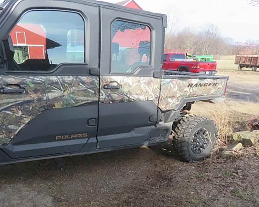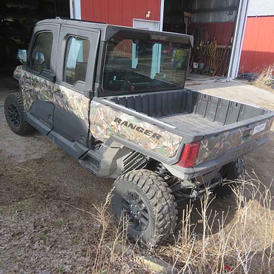 ATV: 2024 Polaris 1500 Extreme Duty Ranger, 4-door, 2700 miles, 217 engine hrs., steel drive trans., camo, blinkers, doors, heat, a/c, radio, elec. windows, winch, sharp;