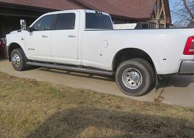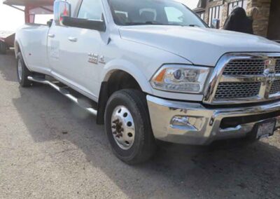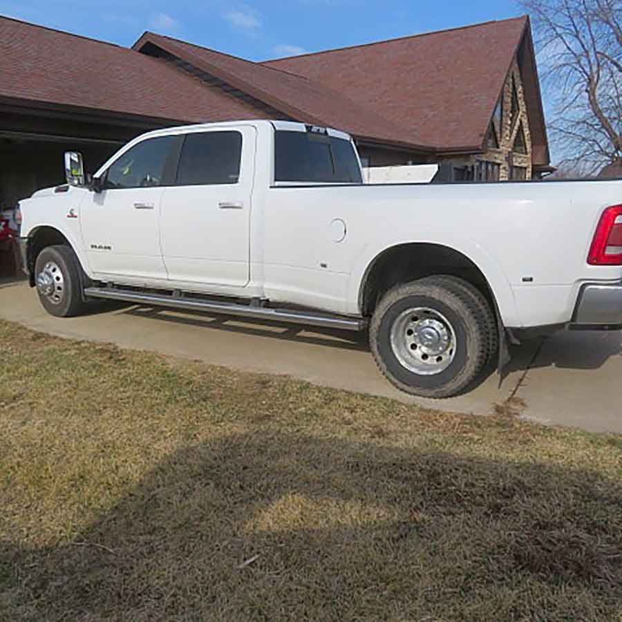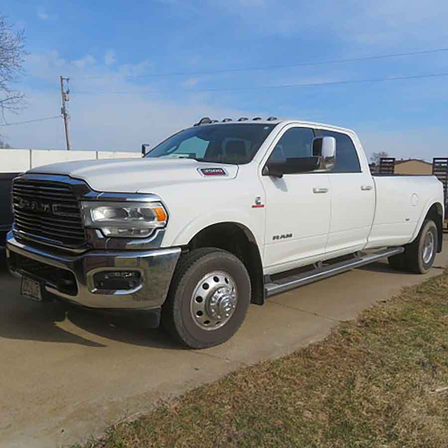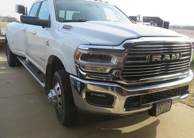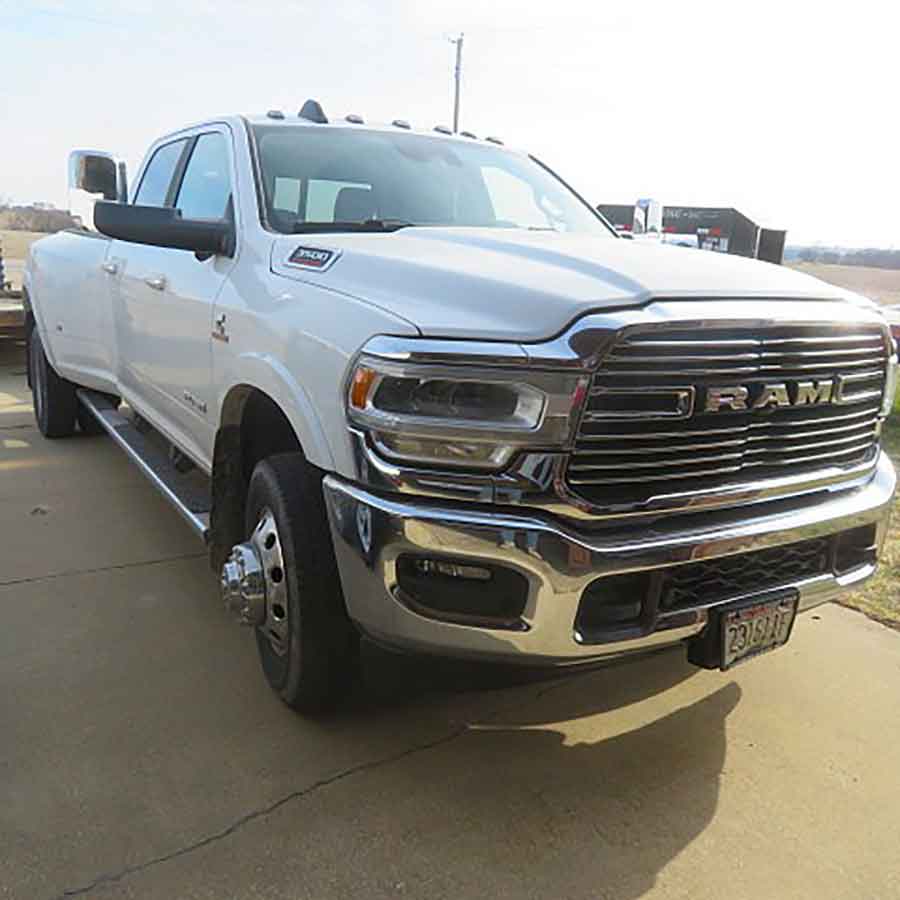 TRUCKS & CAR: 2019 Dodge Ram Laramie 3500, 6.7 turbo diesel, 54,840 miles, HD, dually, 5th wheel, 4×4, auto, 4-door, heat & cool seats, loaded; 2018 Dodge Ram Laramie 3500, turbo diesel, dually, 4×4, auto, 4-door, long box, 5th wheel, tonneau cover, 92,728 miles, heat & cool seats; 1998 Dodge Ram 3500 Laramie SLT, 5.9 Cummins turbo diesel, auto, ex. cab, dually, 4×4, 292,000 miles, truck box; L-shape truck gas tank w/pump, 105 gal.; 2023 Dodge Challenger 1320, 19,330 miles, last call edition, 2-door, auto, moon roof, white, loaded, leather, very nice;