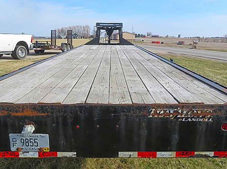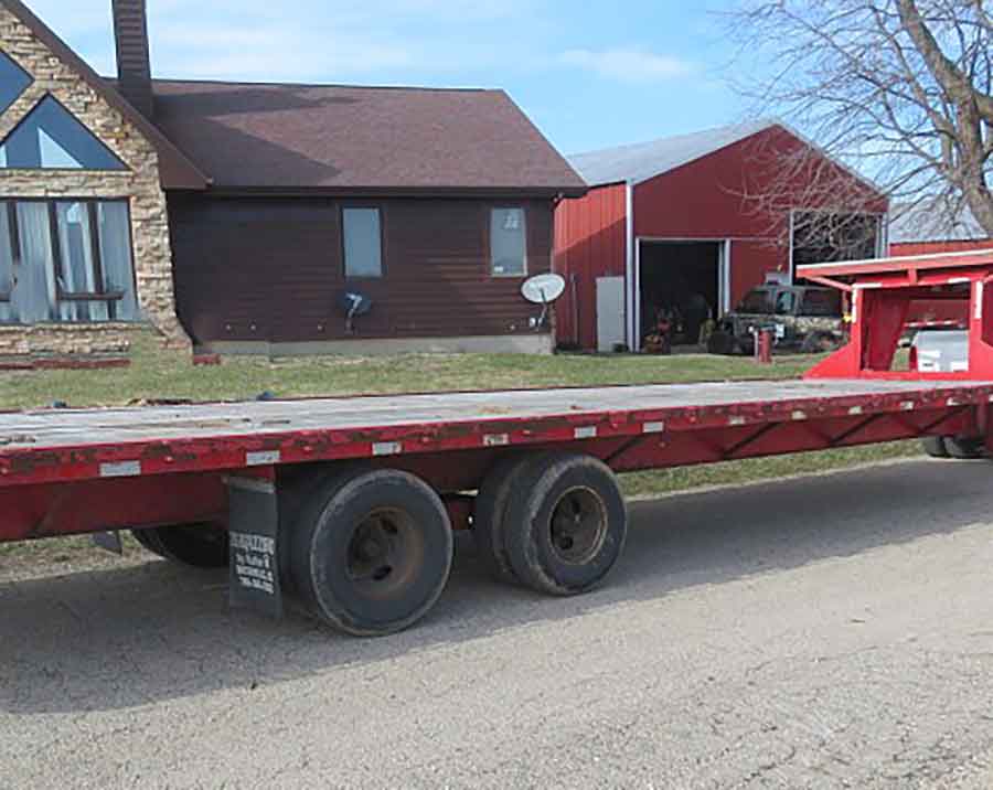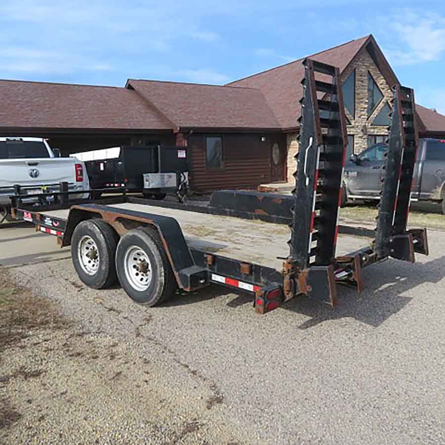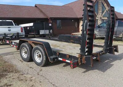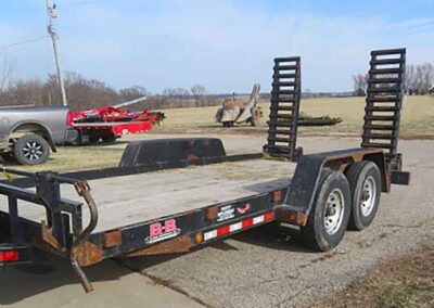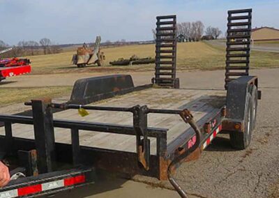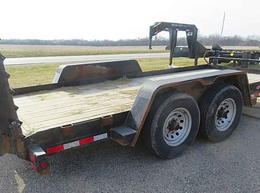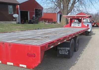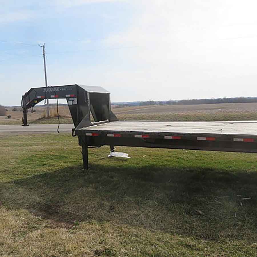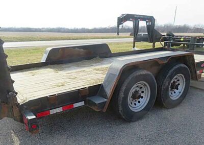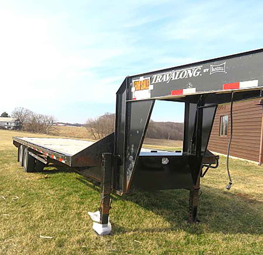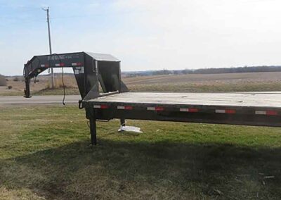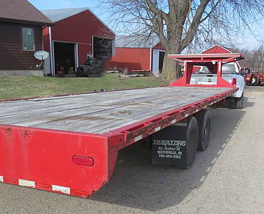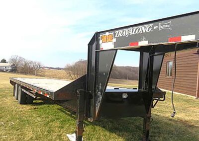 TRAILERS: 2019 Travalong 30’ flatbed gooseneck, tandem duals; K&K K140 7×14 dump trailer, GW 4,000lbs, 3’ deep sideboards, heavy axle, elec. brakes, bought new, very nice; 2005 Fontane 48’ Aluminum Dropdeck Semi-Trailer; 2020 skidloader bh trailer, 7×16’ w/fold down ramps;