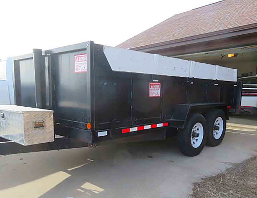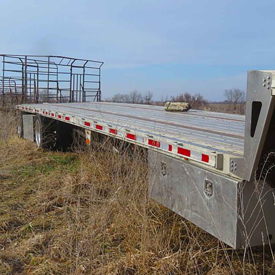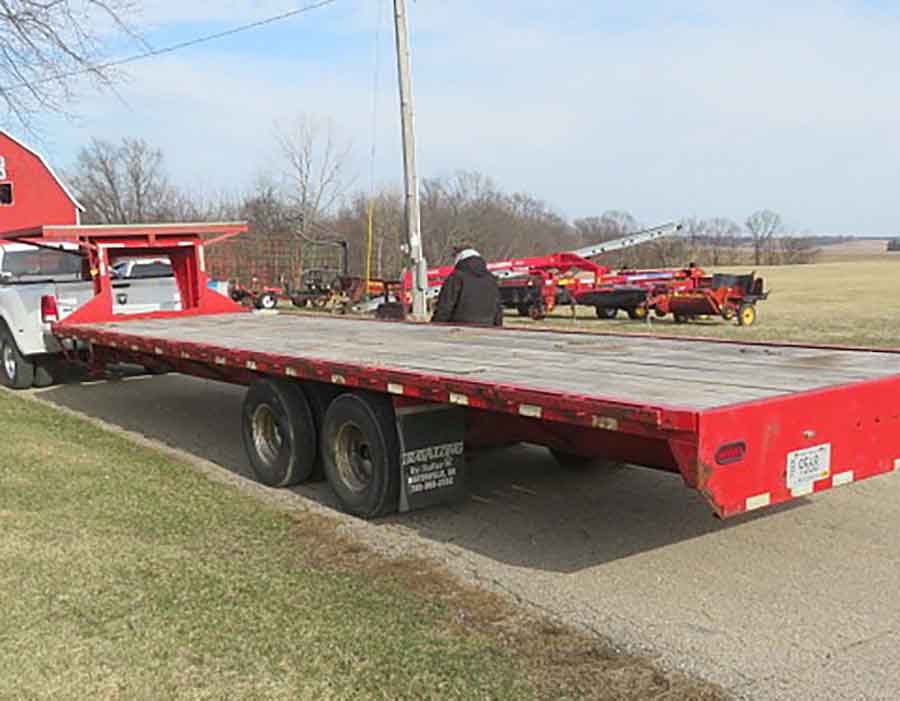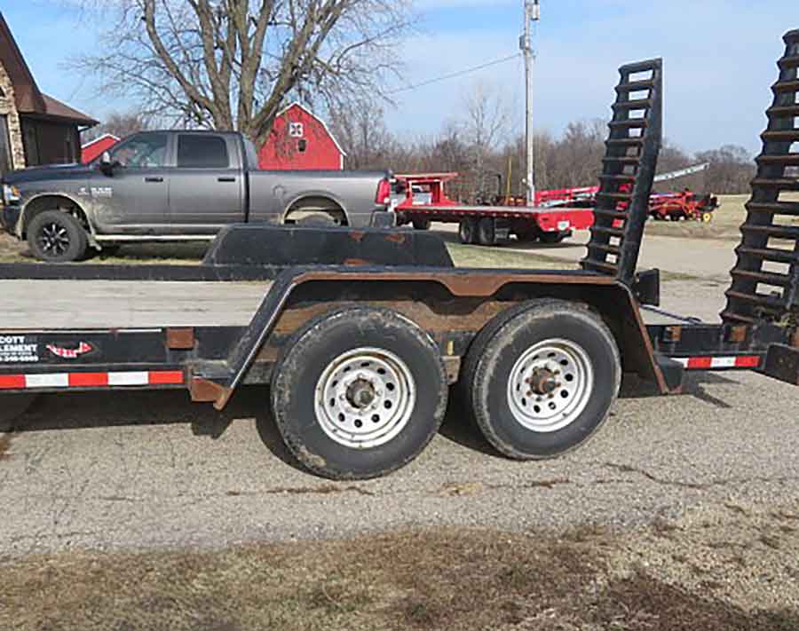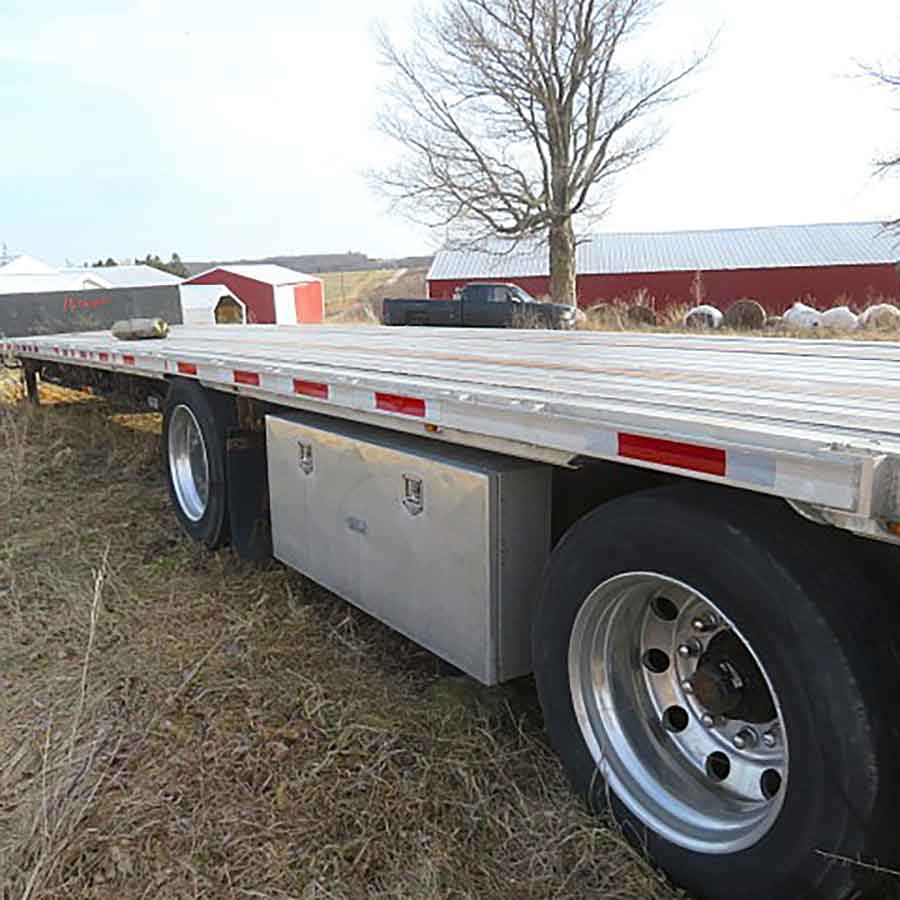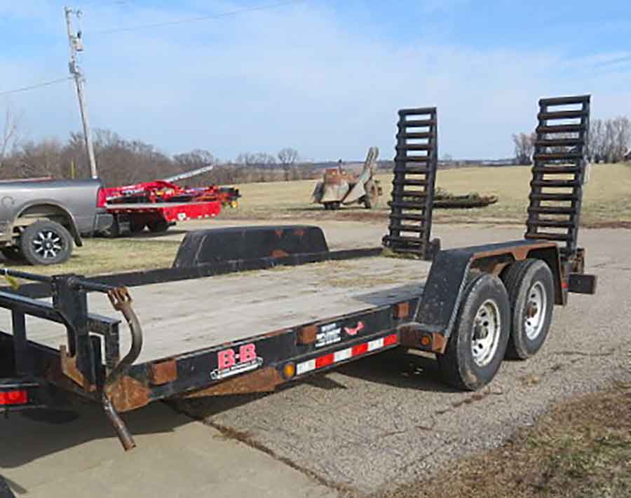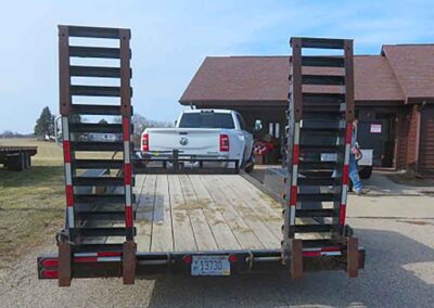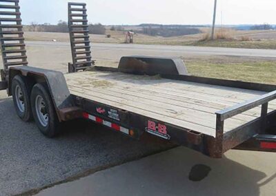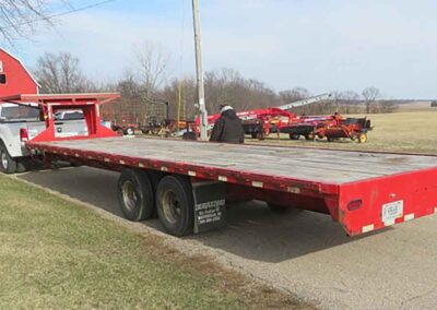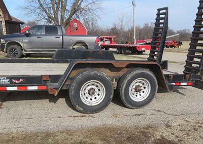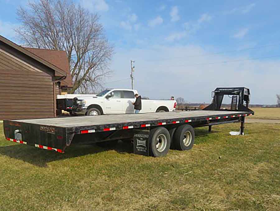 TRAILERS: 2019 Travalong 30’ flatbed gooseneck, tandem duals; K&K K140 7×14 dump trailer, GW 4,000lbs, 3’ deep sideboards, heavy axle, elec. brakes, bought new, very nice; 2005 Fontane 48’ Aluminum Dropdeck Semi-Trailer; 2020 skidloader bh trailer, 7×16’ w/fold down ramps;