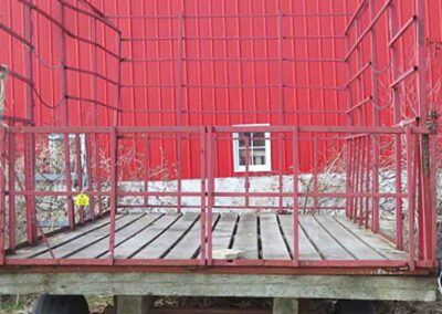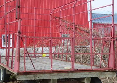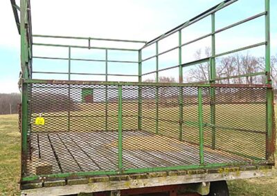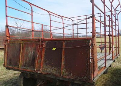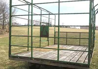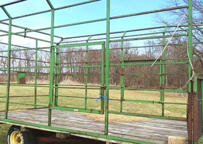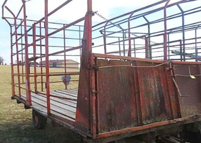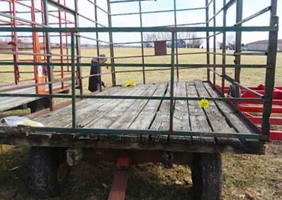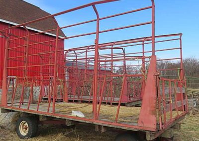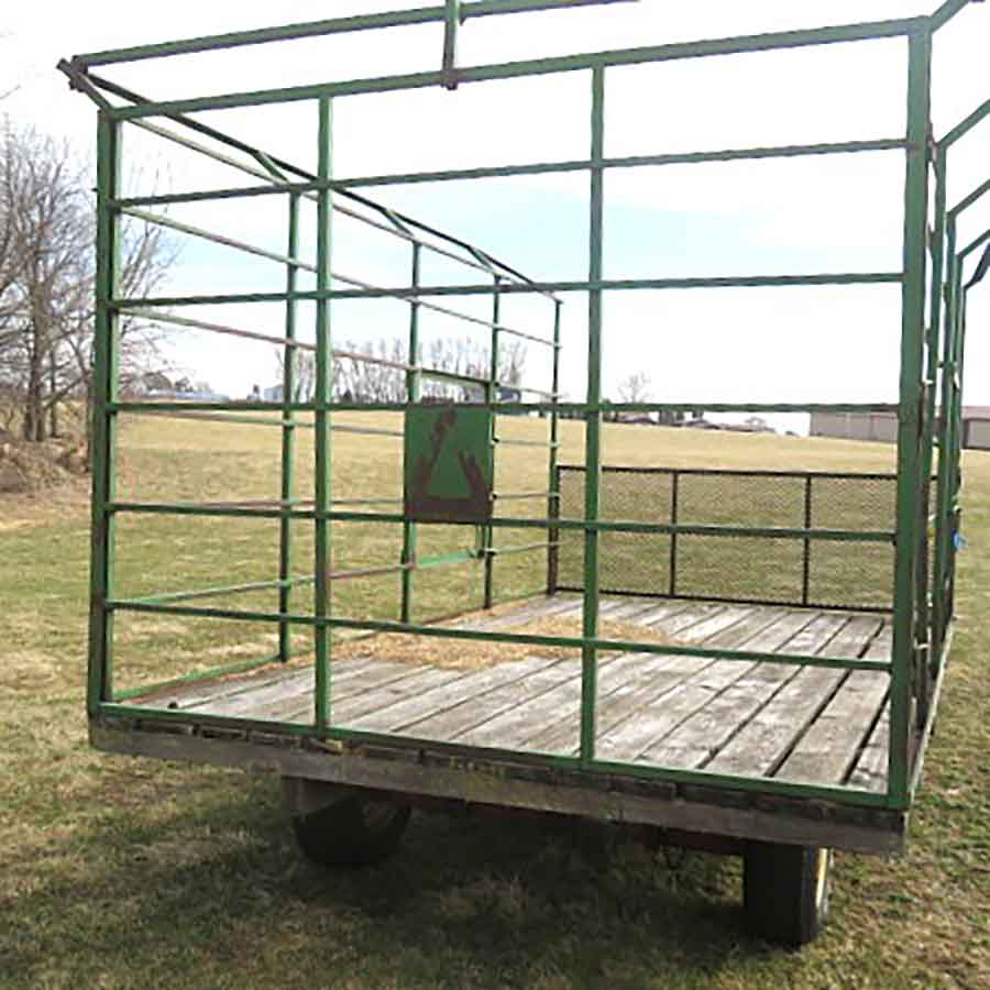 WAGONS: 8×16 cage wagon, 2” wood floor w/Kasten gear, slant bar; Meyers 8×16 cage wagon, 2” wood floor, slant bar; 8×16 steel cage wagon w/2” wood floor, drop down front, slant bar; 8×16 cage wagon, 2” wood floor, slant bar; 2-Metz cage tops with floor, no gear; 8×16 cage wagon, drop front, slant bar, 2” floor; 3-older cage wagons; 3-9×18 cage wagons w/wood floors, ext. tongues, drop front, slant bars;